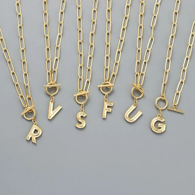 Ожерелье с буквами A-Z, женский кулон с алфавитом, золотая цепочка с канцелярскими скрепками, тумблер, ожерелье для женщин, хип-хоп, панк, первоначальное имя, ювелирные изделия