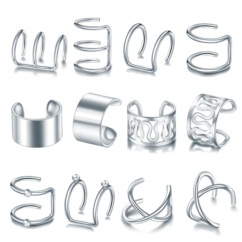 Набор каффов для ушей, 12 шт., из нержавеющей стали, поддельные сер...