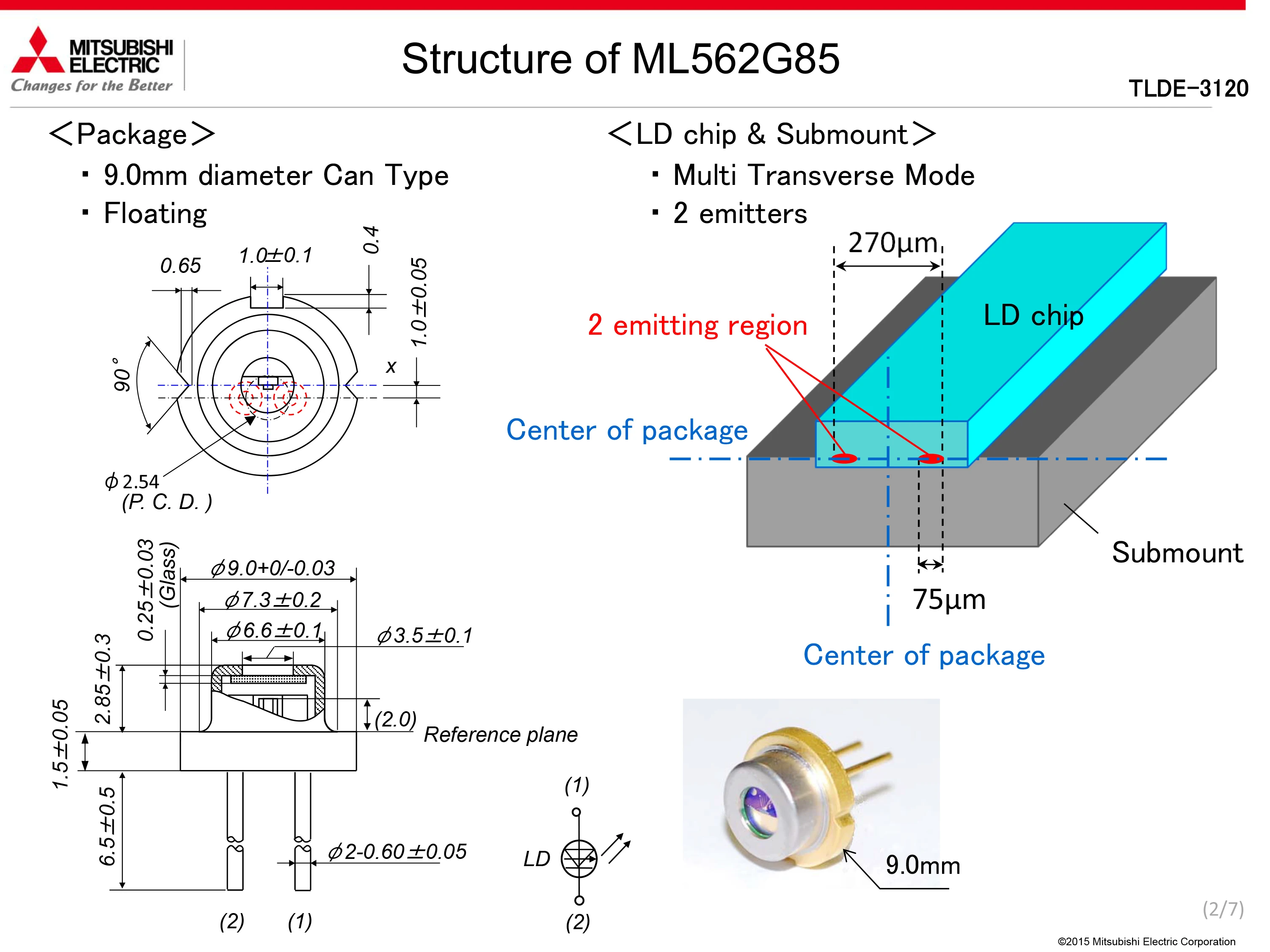ML562G85 9,0 мм 2,1 нм Вт 2 Вт оранжевый красный лазерный диод