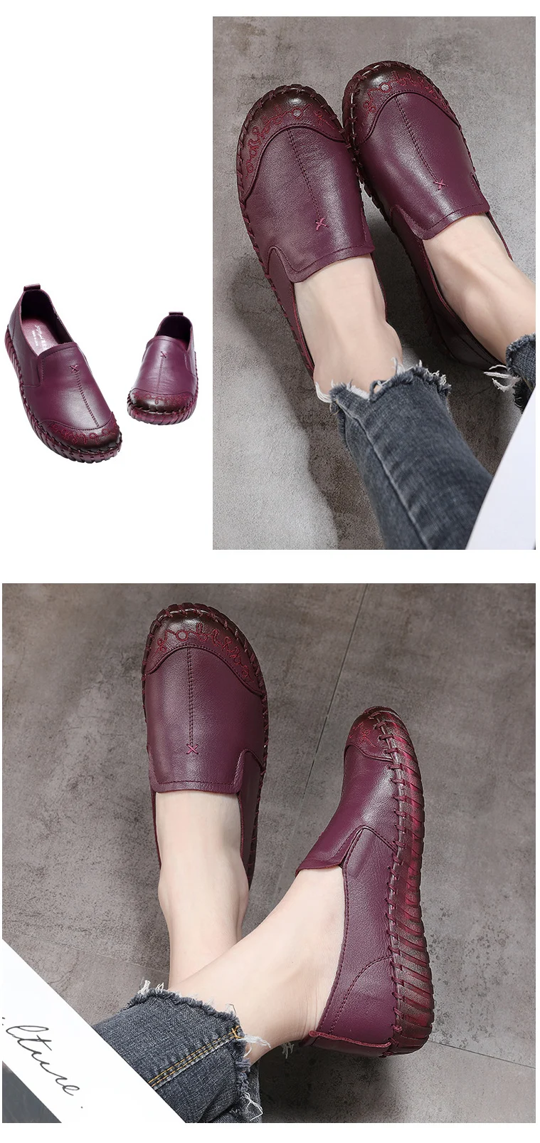 Туфли женские из натуральной кожи на плоской подошве, лоферы, Мокасины, натуральная фиолетовая обувь, белые, черные, большие размеры 42