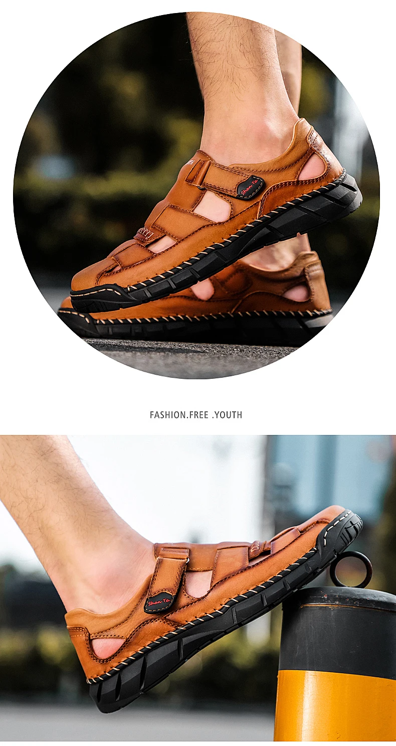 Сандалии мужские кожаные, Классическая Уличная Повседневная обувь и...