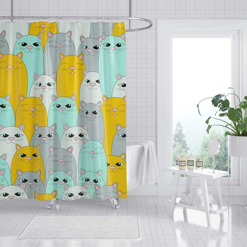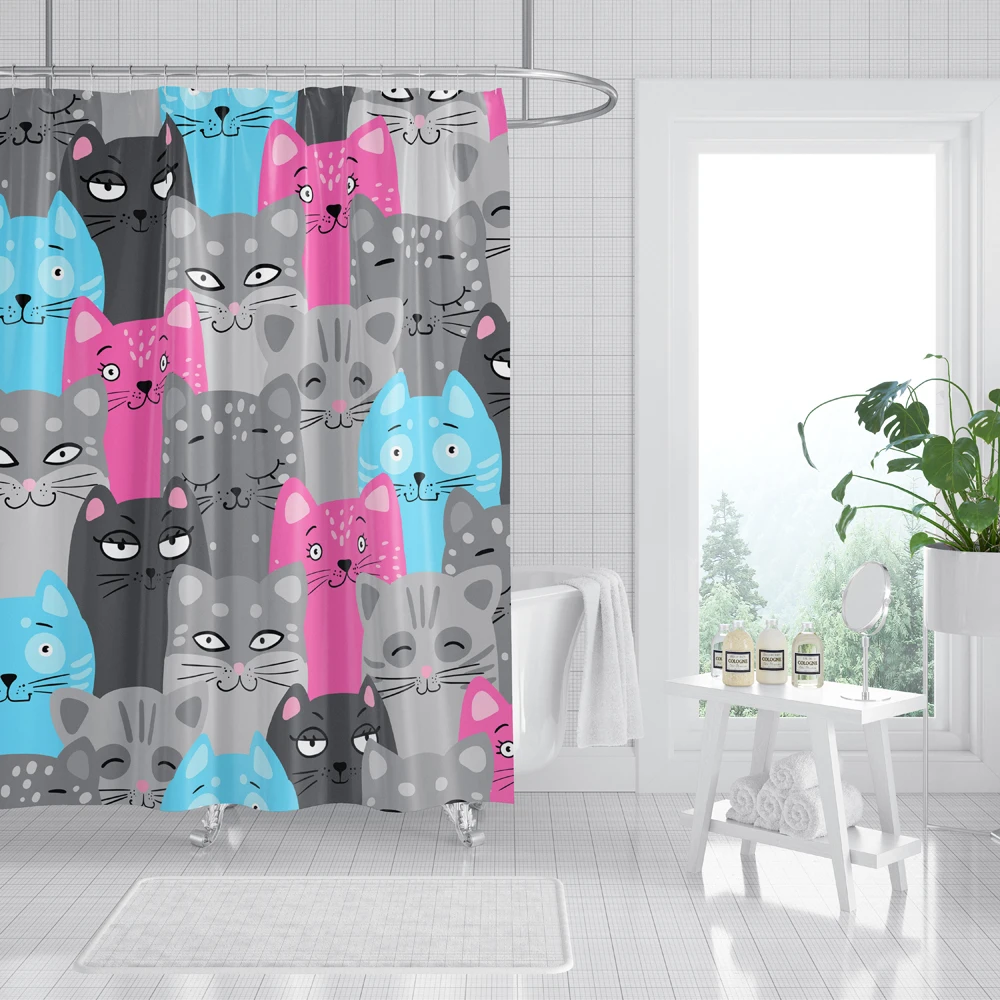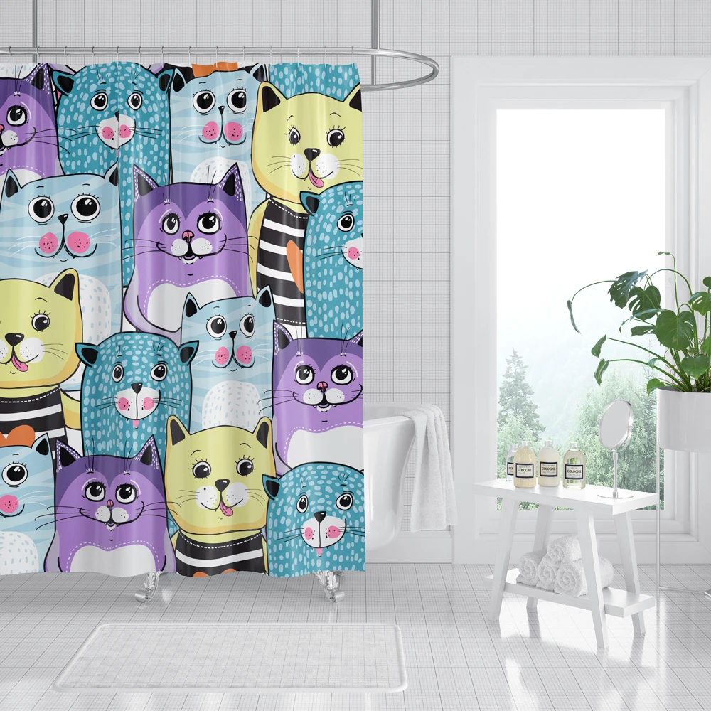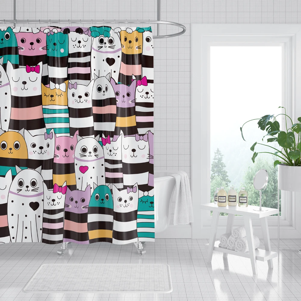 Занавеска для душа с мультяшным котом и собакой, водонепроницаемая ванночка из полиэстера с 3D принтом, с крючками, современный Декор для дома