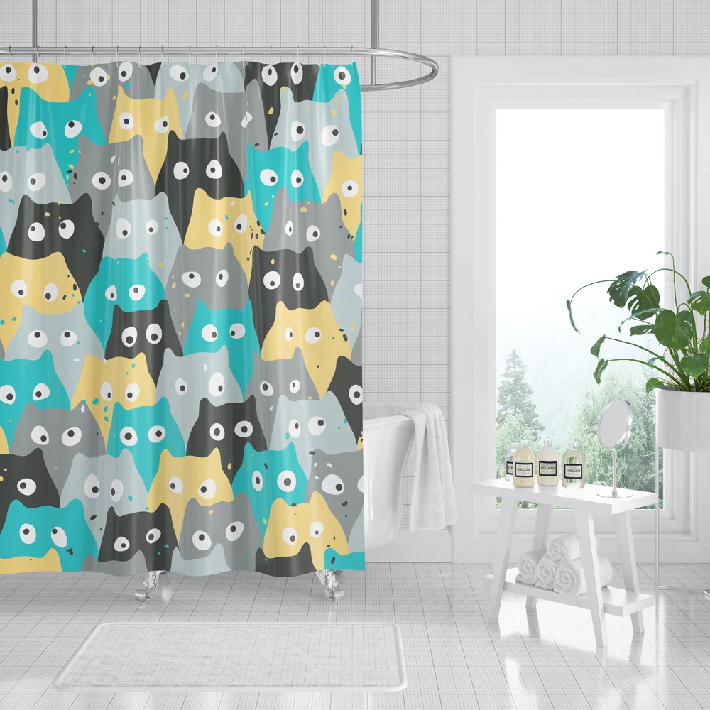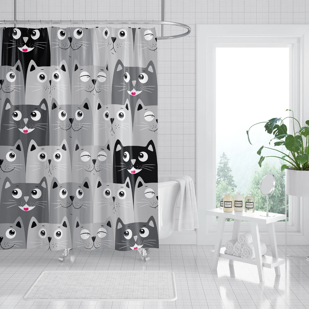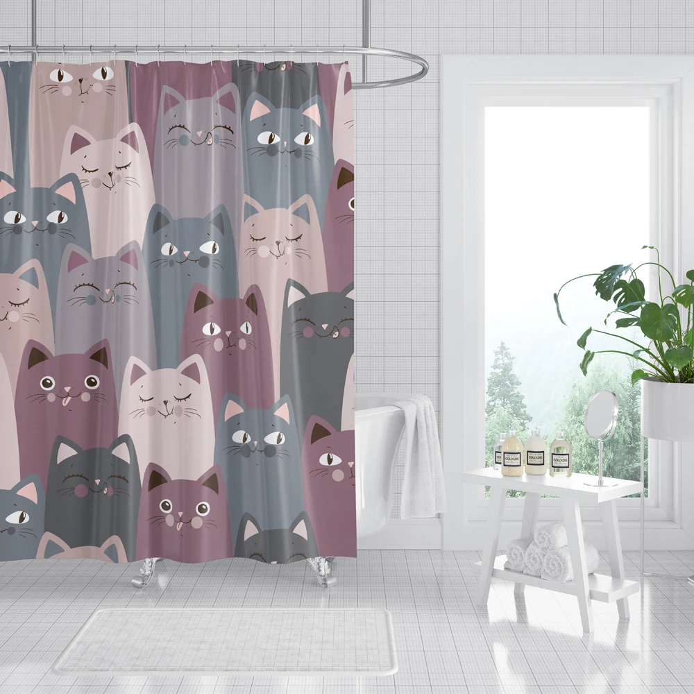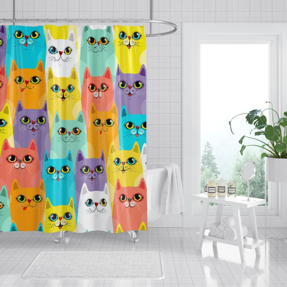 Занавеска для душа с мультяшным котом и собакой, водонепроницаемая ванночка из полиэстера с 3D принтом, с крючками, современный Декор для дома