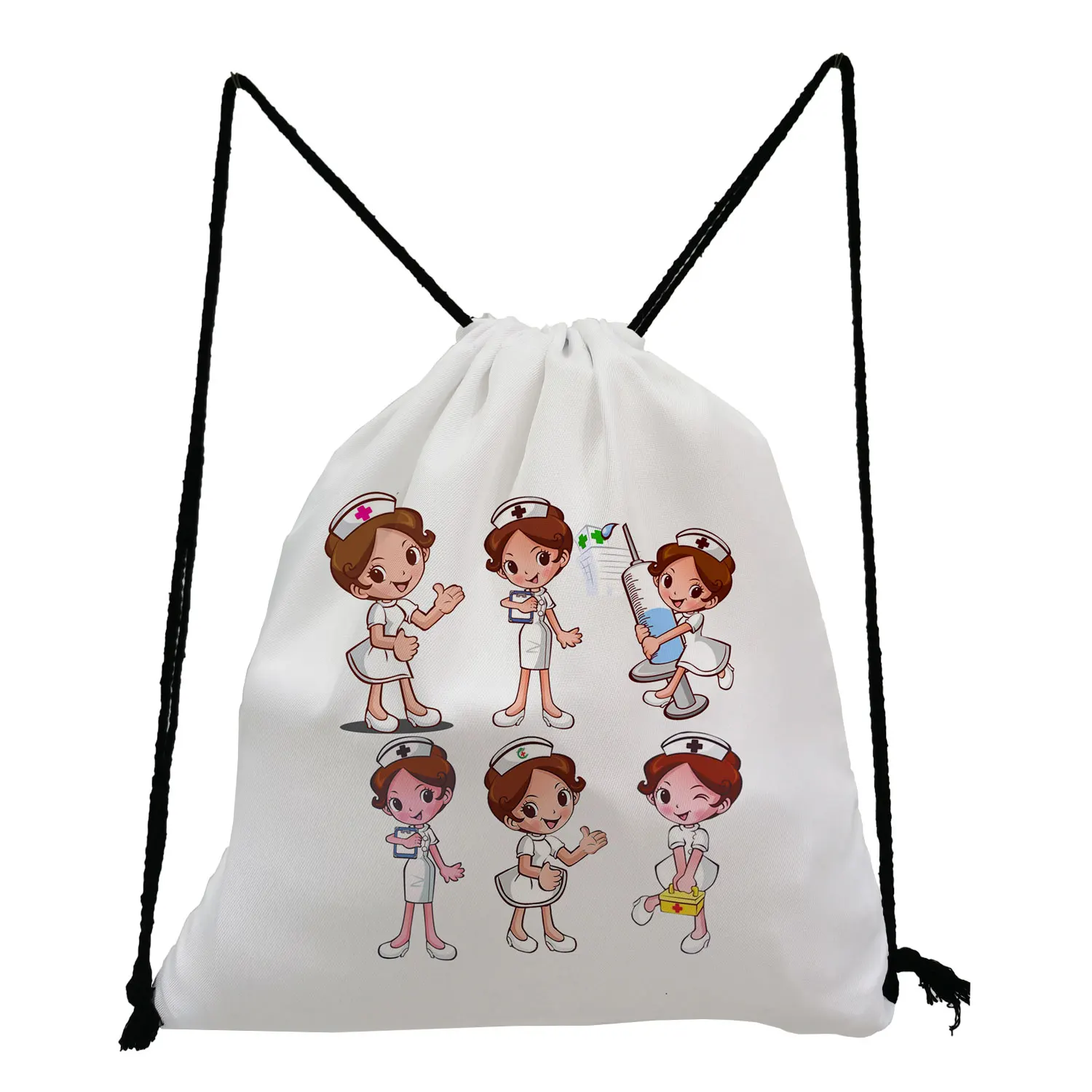 Горячая Распродажа, сумки на шнурке с принтом медсестры, рюкзаки унисекс для повседневного использования, многофункциональная сумка для хранения для детей, сумка для конфет высокой емкости