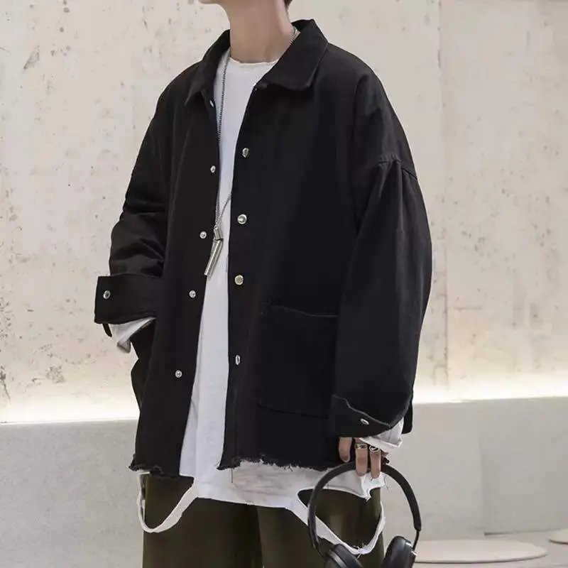 Весна-Осень 2022, рабочая одежда с отложным воротником, Мужская свободная черная трендовая универсальная повседневная куртка в стиле преппи, Женская куртка в стиле хип-хоп, уличная одежда