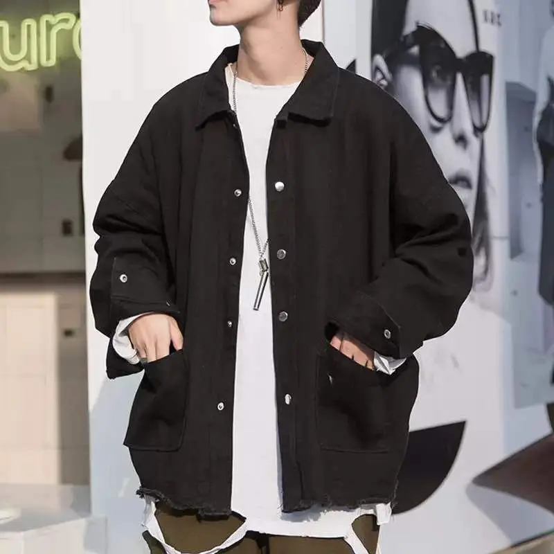 Куртка мужская джинсовая с лацканами, уличная одежда из плотного ба...