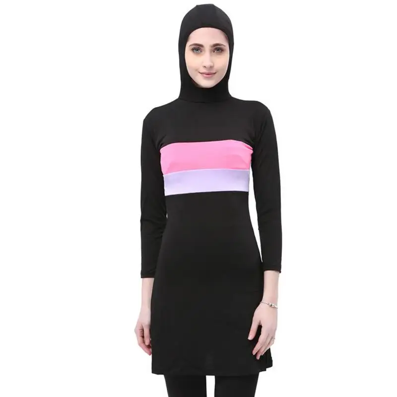 Новинка 2021, розовая Женская одежда для плавания с принтом в полоску, мусульманская одежда для плавания, мусульманский костюм для плавания, одежда для серфинга, Спортивная юбка 5XL