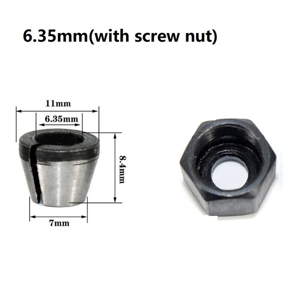 Цанговый патрон адаптер с гайкой 1 комплект 6 мм 6,35 мм 8 мм углеродистая сталь для гравировального Станка деревообрабатывающий инструмент детали для фрезерного станка