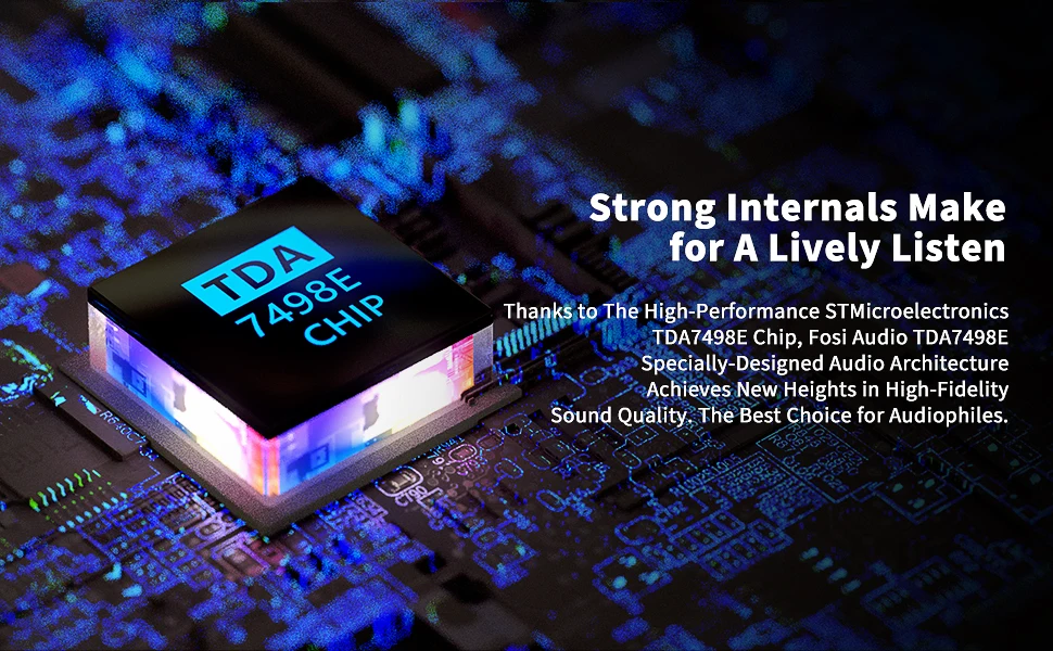 Используйте Чип ST Micro TDA7498E для получения четкого звукового звука, без поп-сигнала, без звукового шума, тихий, когда ничего не играет через него.