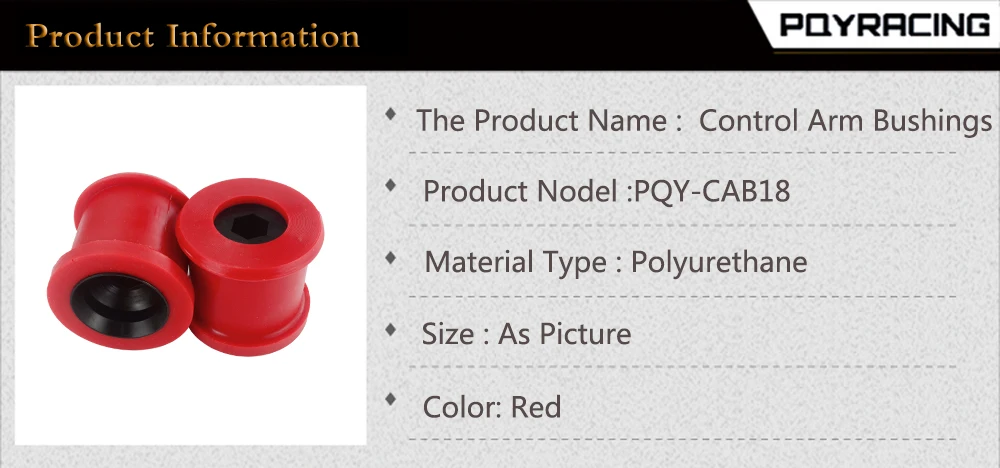 Заменяет старые, изношенные или резиновые втулки и/или служит обновлениемИзготовлен из полиуретановой смеси, которая намного превосходит резинуПоддерживает лучшую обработку и производительностьРуководство по установке отсутствует. Настоятельно рекомендуется Профессиональная установкаРазмеры и материал: