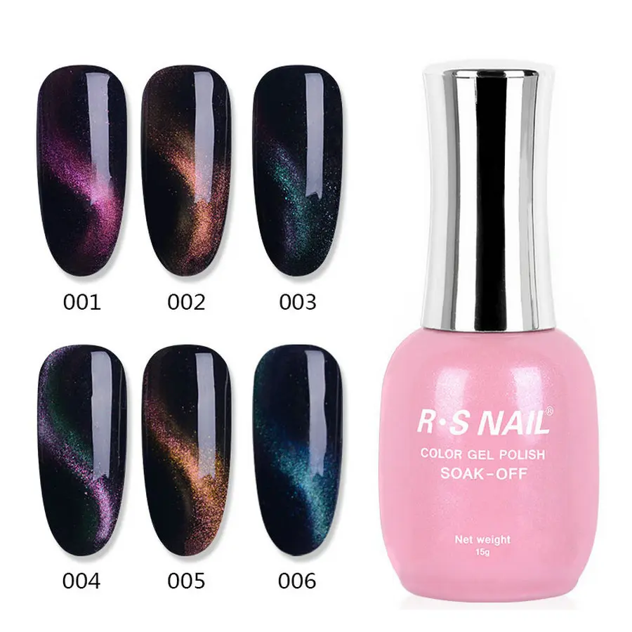 RS лак для ногтей 15 мл 3D кошачий УФ Магнитный Гель-лак отмачиваемый лак для ногтей для УФ-и светодиодной лампы Магнитный лазер Сияющий Красочный лак для ногтей для дизайна ногтей