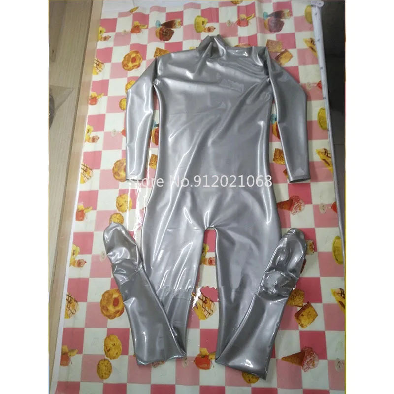 Боди мужское латексное серебристое с застежкой-молнией сзади, для косплея