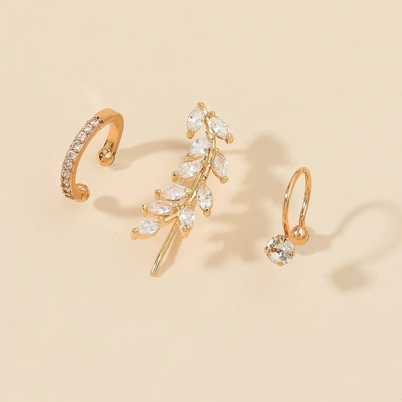 Кафф для ушей, без пирсинга, с кристаллами, стразы, серьги-гвоздики...