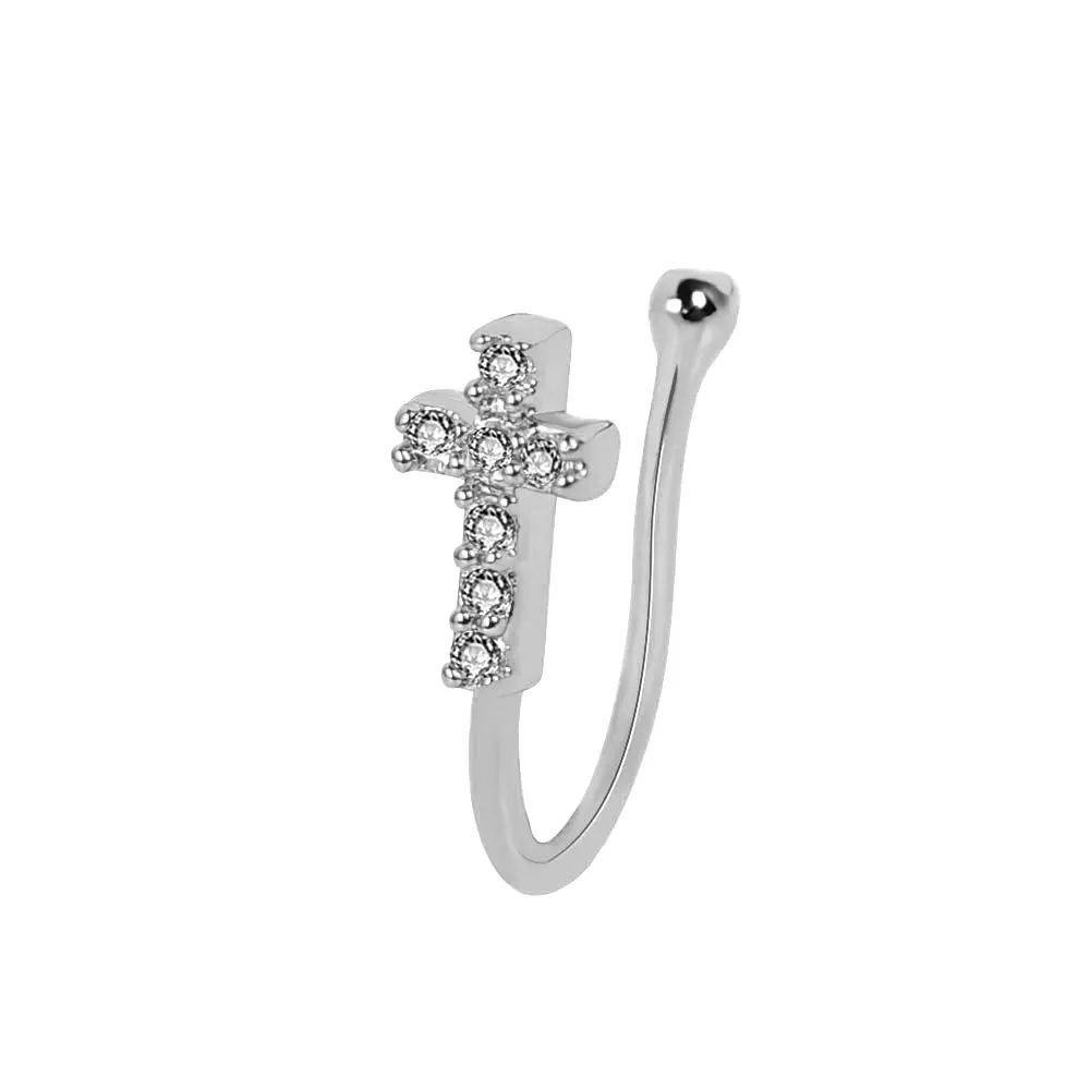 1 шт. модное кольцо для носа, очаровательное кольцо с цветком, бабочкой, кристаллом, цирконием, металлическим поддельным пирсингом, кольцо для носа, серьги, простые ювелирные изделия