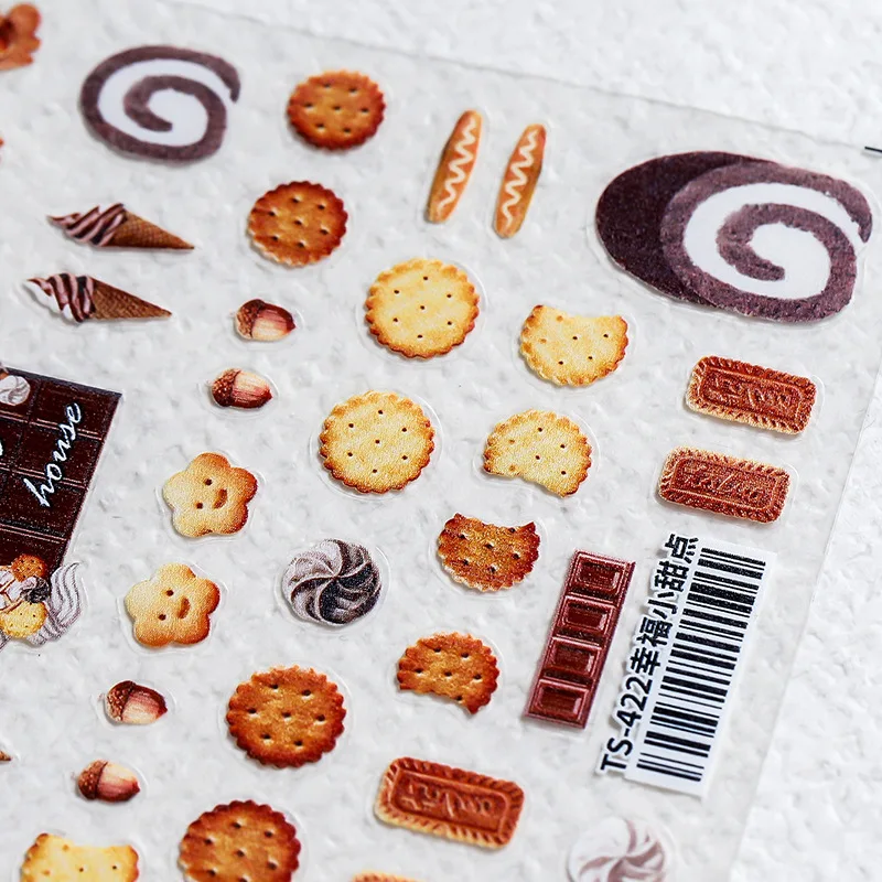 Наклейки для ногтей с 3D гравировкой, печенье, шоколадное мороженое