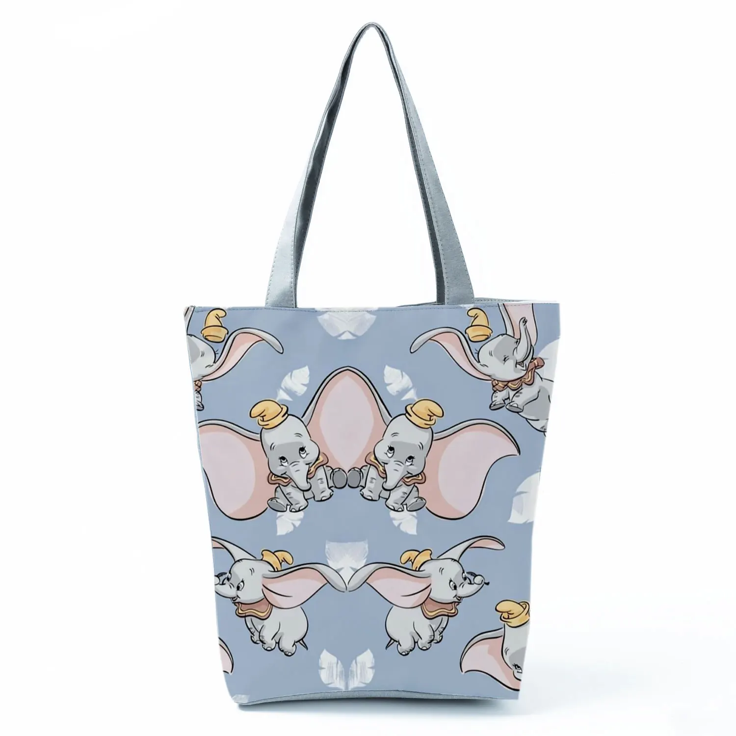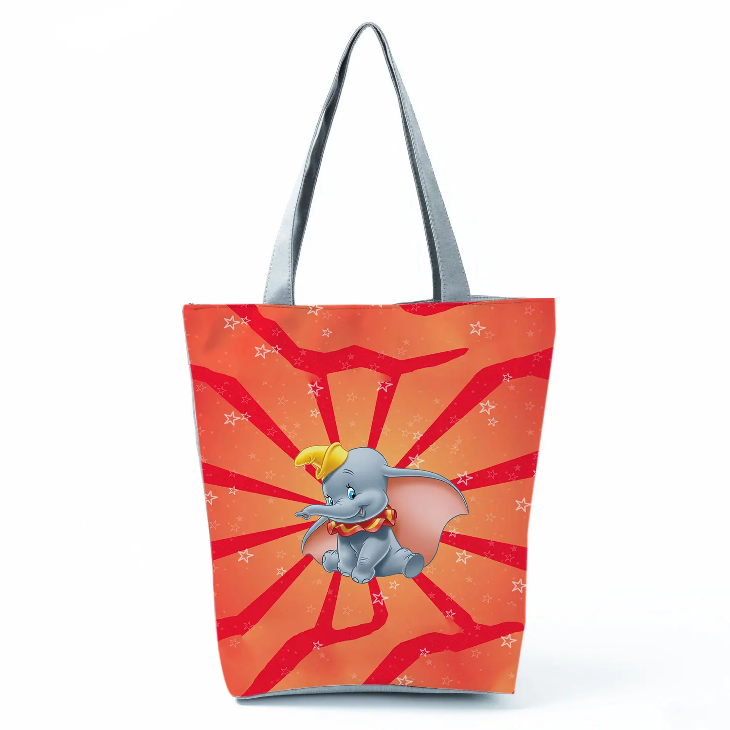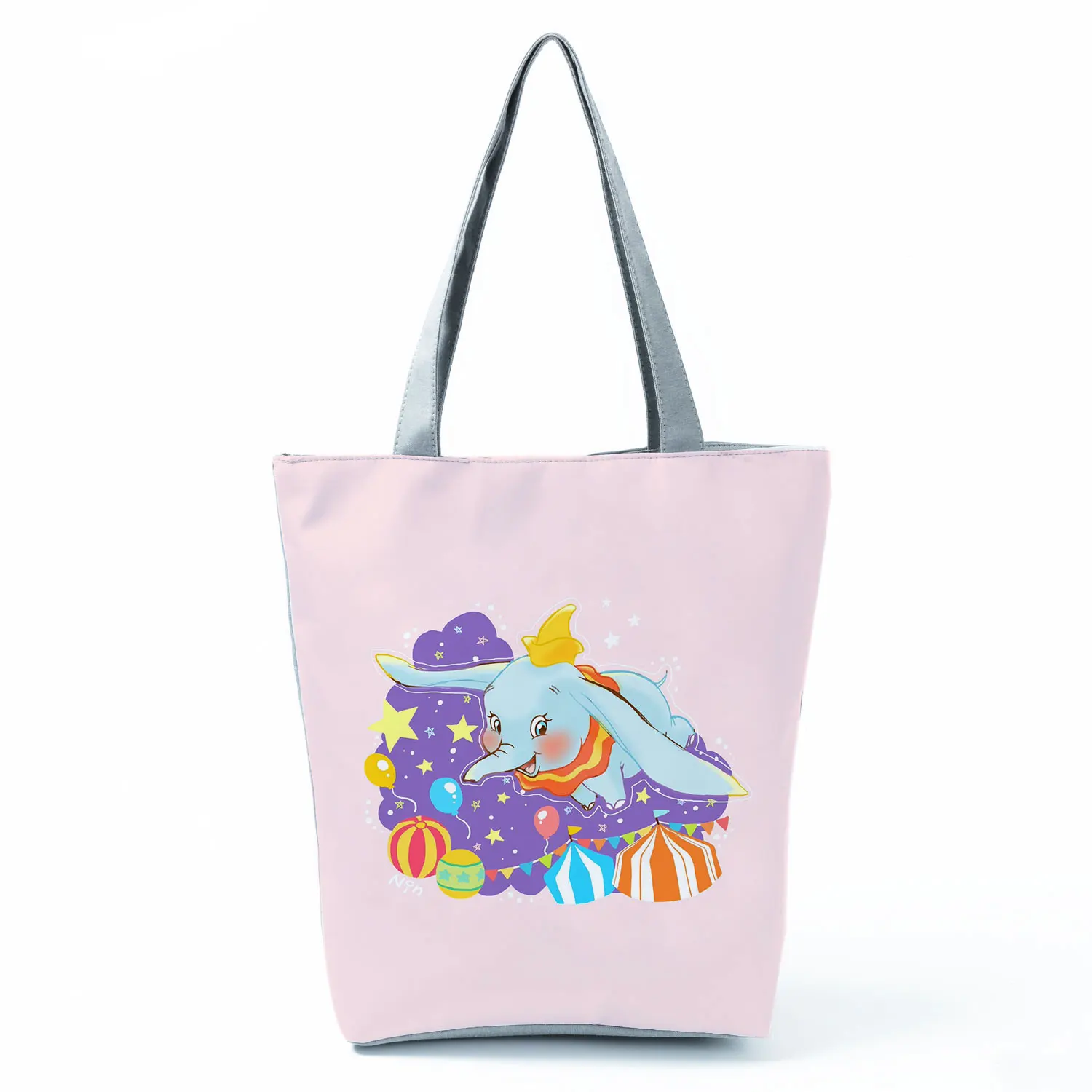Женская сумка с рисунком Диснея Дамбо, вместительная сумка-тоут, сумка через плечо, женская сумка из эко-материала, многоразовая сумка, фиолетовая сумка для покупок с перьями
