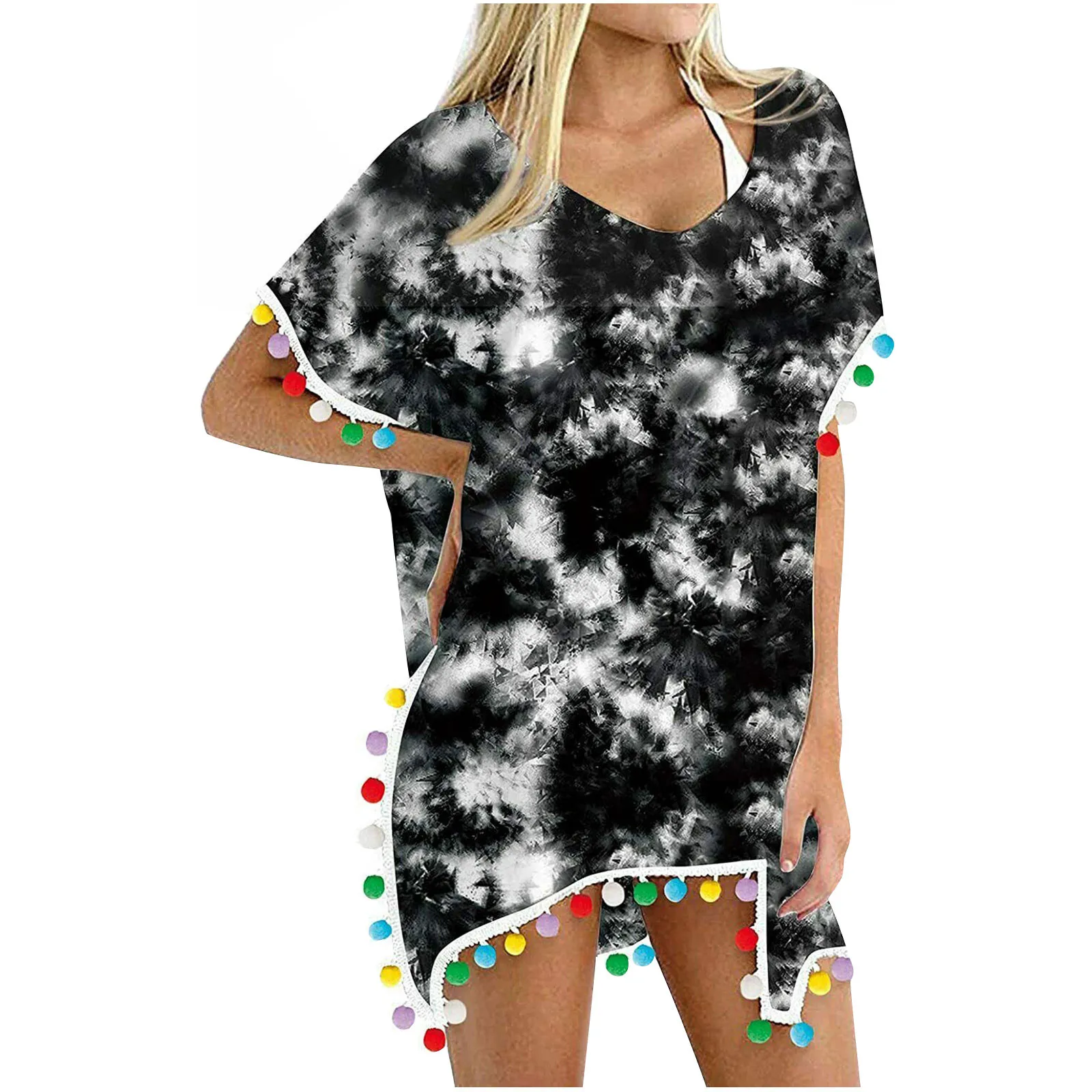Женский кафтан с отделкой, шифоновый купальник с кисточками, пляжный свободный бикини, накидка, топы