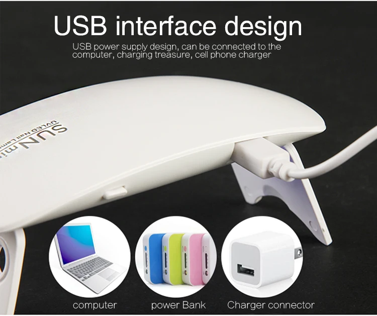 Портативный сушильщик для ногтей SUNmini 6 Вт 6 шт.светодиодов Ультрафиолетовый для сушки гель полировки 4560s Таймер Авто индукционный инструмент для маникюра