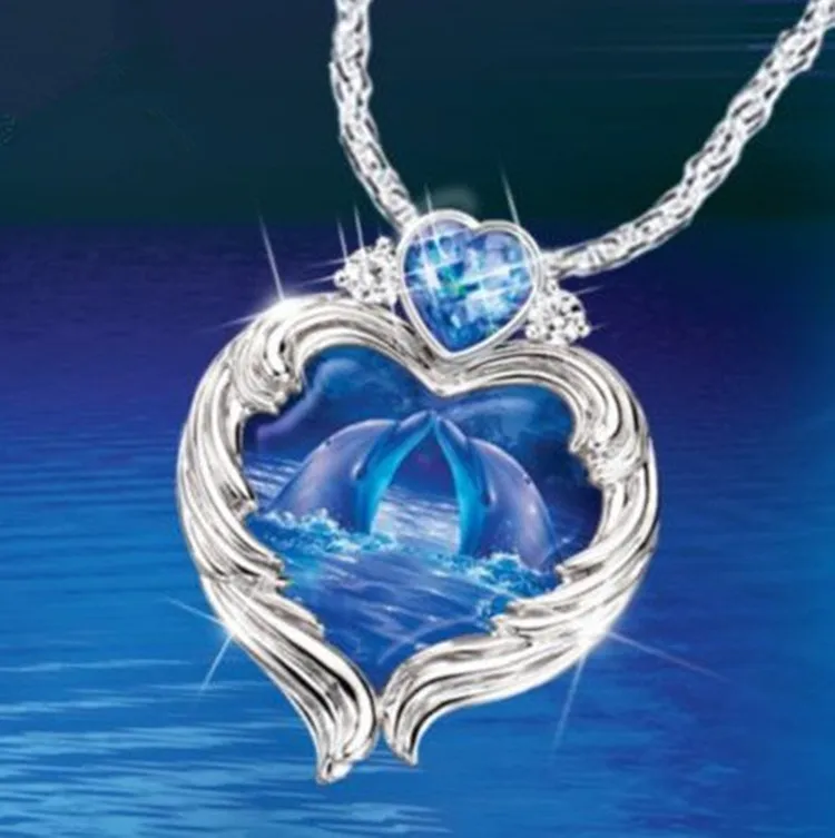 В форме сердца хрустальный Дельфин волна охватывающий Синий Циркон инкрустированный подводный мир существо подвеска ожерелья для женщин ювелирные изделия