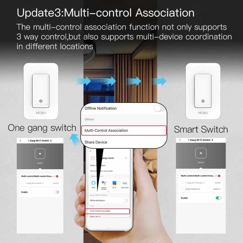 3. Для этой новой версии включено соединение нескольких контролей с другим умным переключателем в приложении smart Life, что идеально решает проблему других