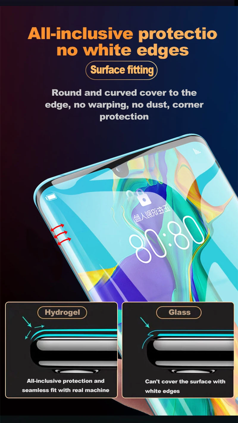 Почему стоит выбрать гидрогель, в чем разница между водоотверждаемой пленкой и закаленной пленкой, вся посылка выгнута до края поверхности без белых краев и не входит в серую