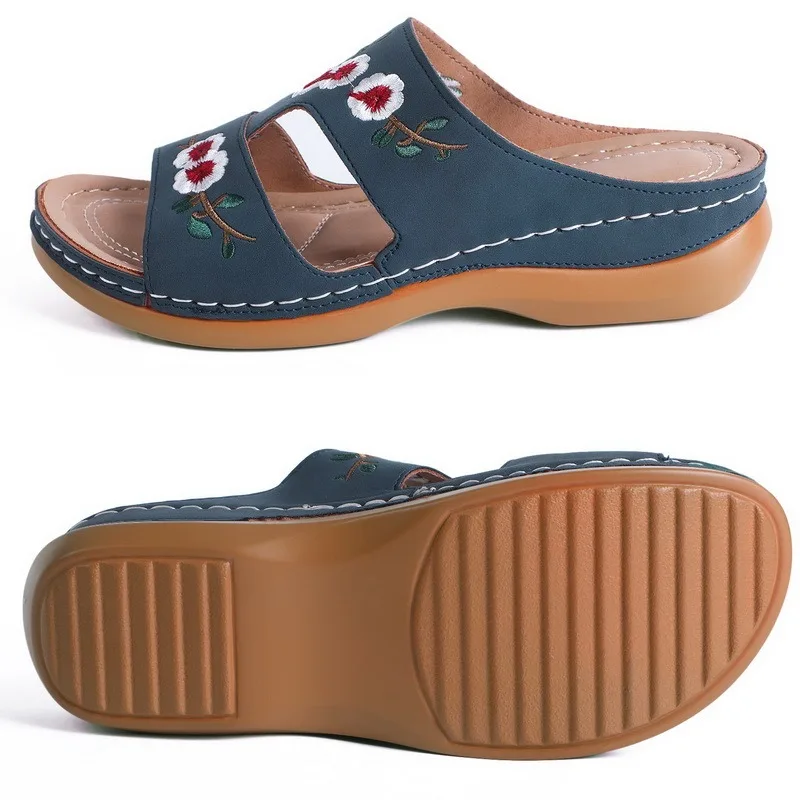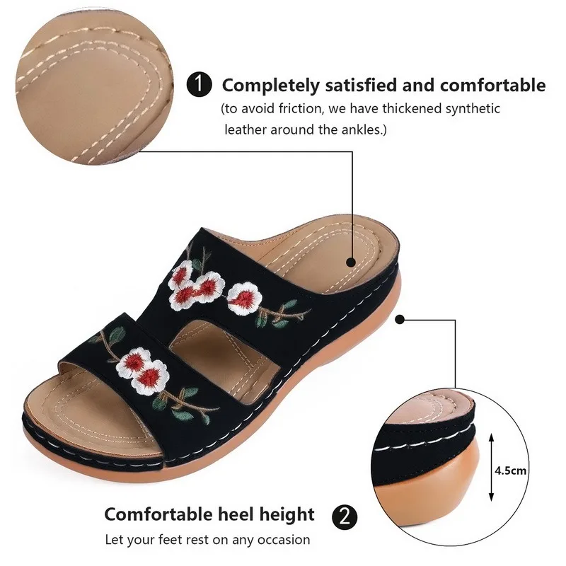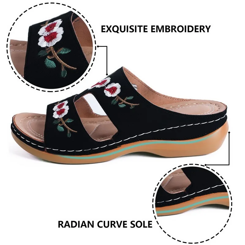 Сандалии женские на платформе, дышащая удобная обувь, Цветочная вышивка, модные тапочки, в ретро стиле, лето