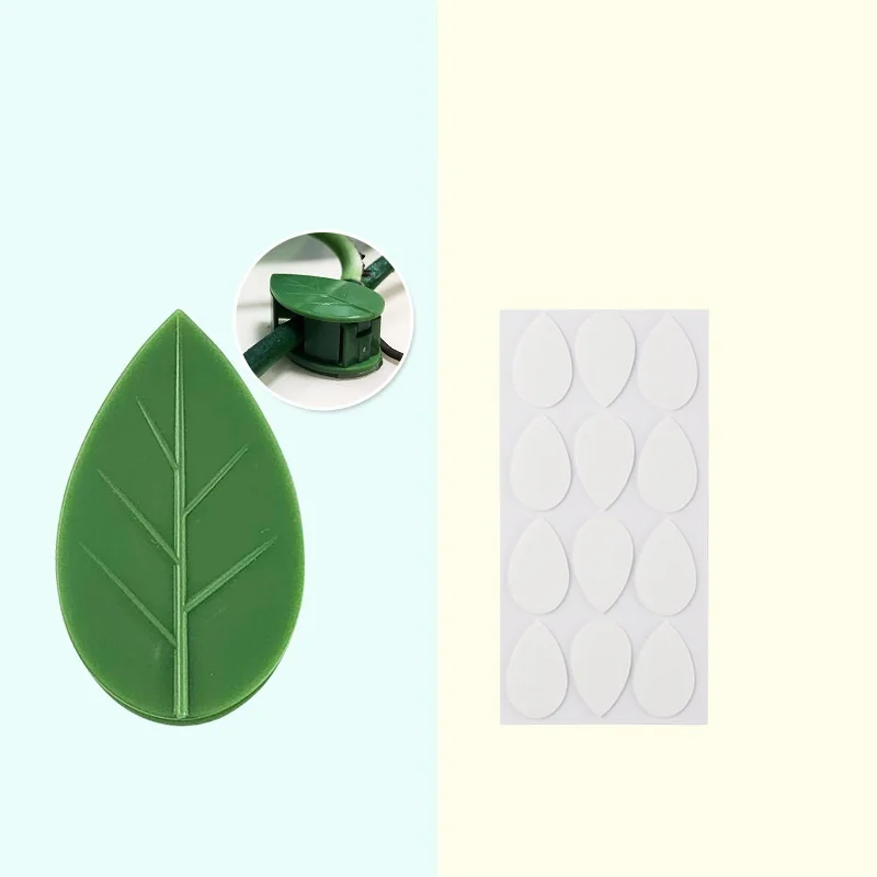 Характеристики:Цвет: зеленыйФорма: листМатериал: экологически чистый АБС-пластик и высоковязкий клей.Функция: Фиксированные растения, Кабельный органайзер для фиксации проводов.Подходит для: маленьких/средних растений или цветов.