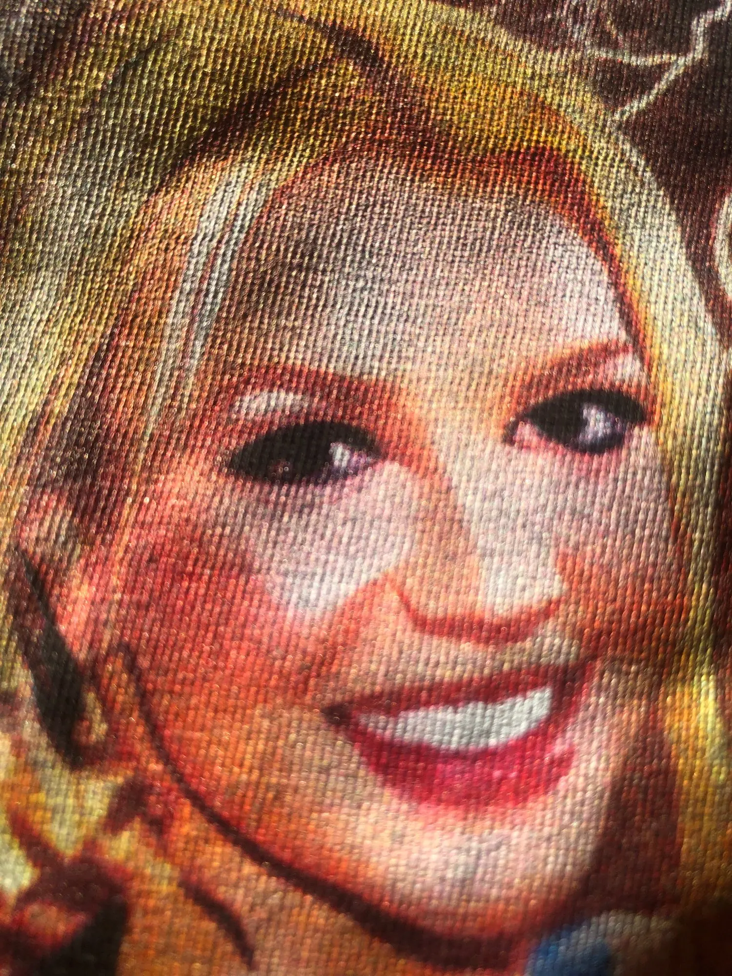 Футболка была необходимого размера и отличного качества по состоянию ткани. А вот рисунок оказался довольно-таки смазан. На каком-то фото у Бритни просто нет глаз, а где-то её прекрасные зубки сделаны единой белой полосой. В общем, по качеству печати:вам есть, к чему стремиться)