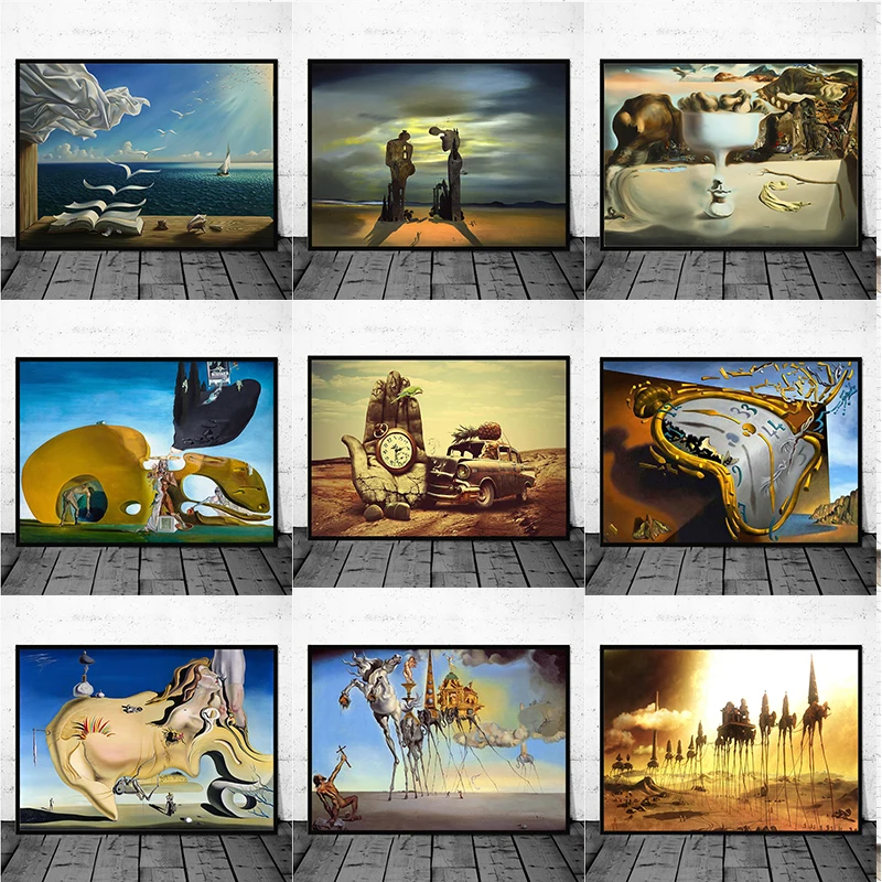 Картины на холсте с сюрреализмом Сальвадора Дали, знаменитые настен...