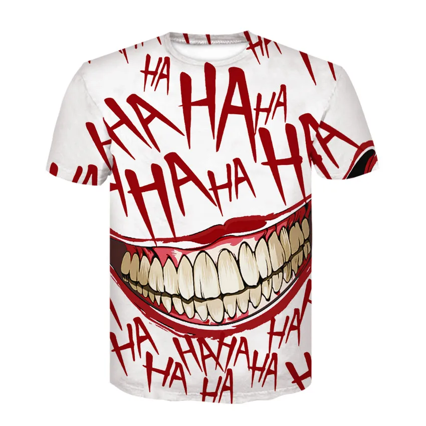 2021 летняя футболка с 3D-принтом клоуна, мужская повседневная мужская футболка с принтом лица Джокера, футболки с коротким рукавом и забавным дизайном в стиле граффити ха-ха, топы
