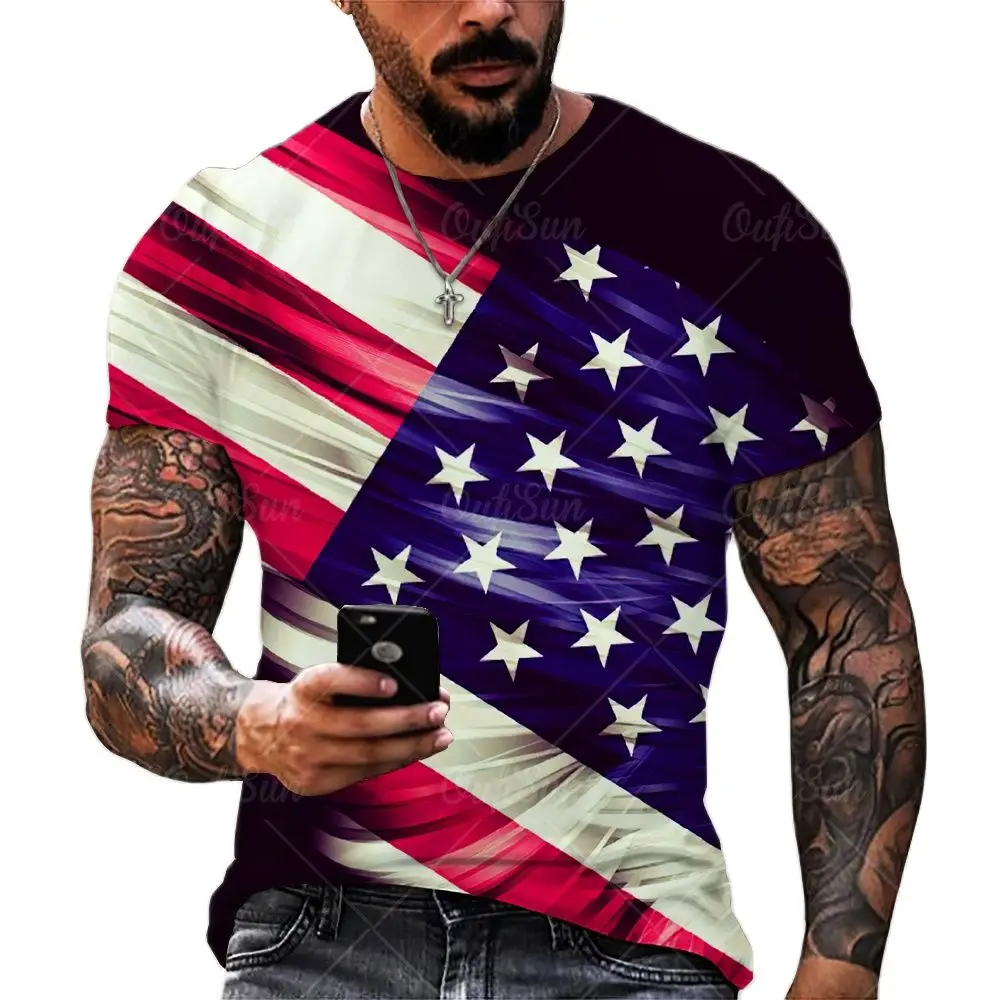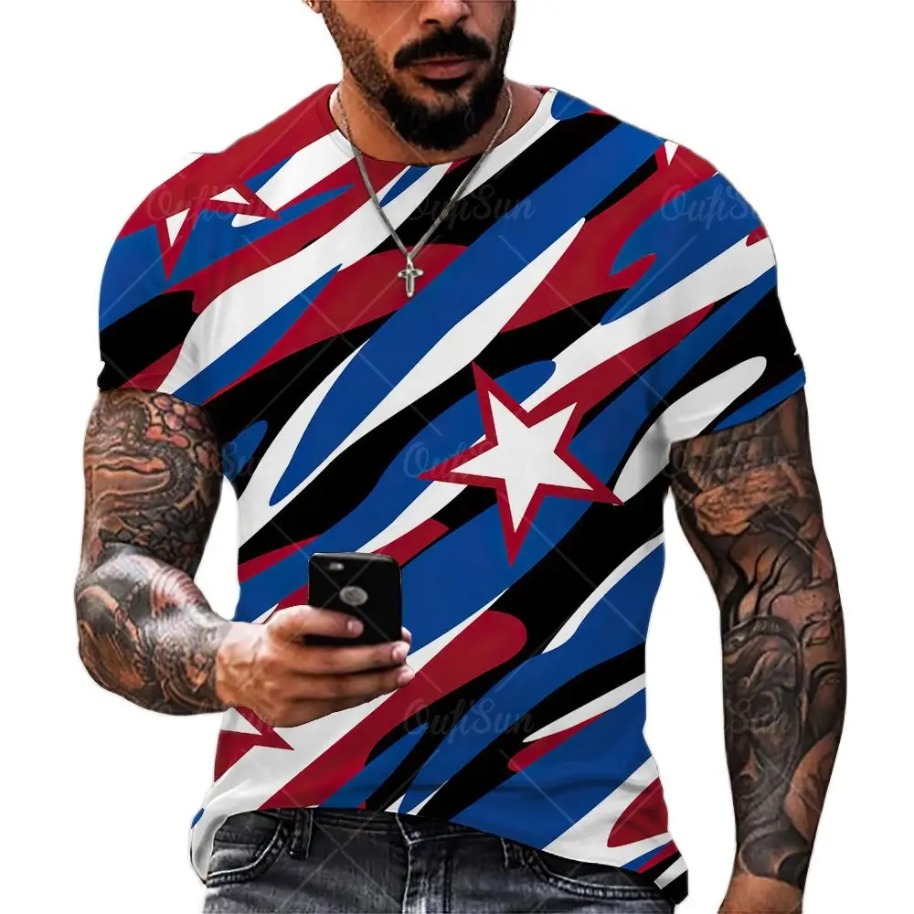 Футболка мужская оверсайз с круглым вырезом, модная спортивная рубашка с коротким рукавом и 3D принтом флага для фитнеса, свободная дышащая уличная одежда, лето