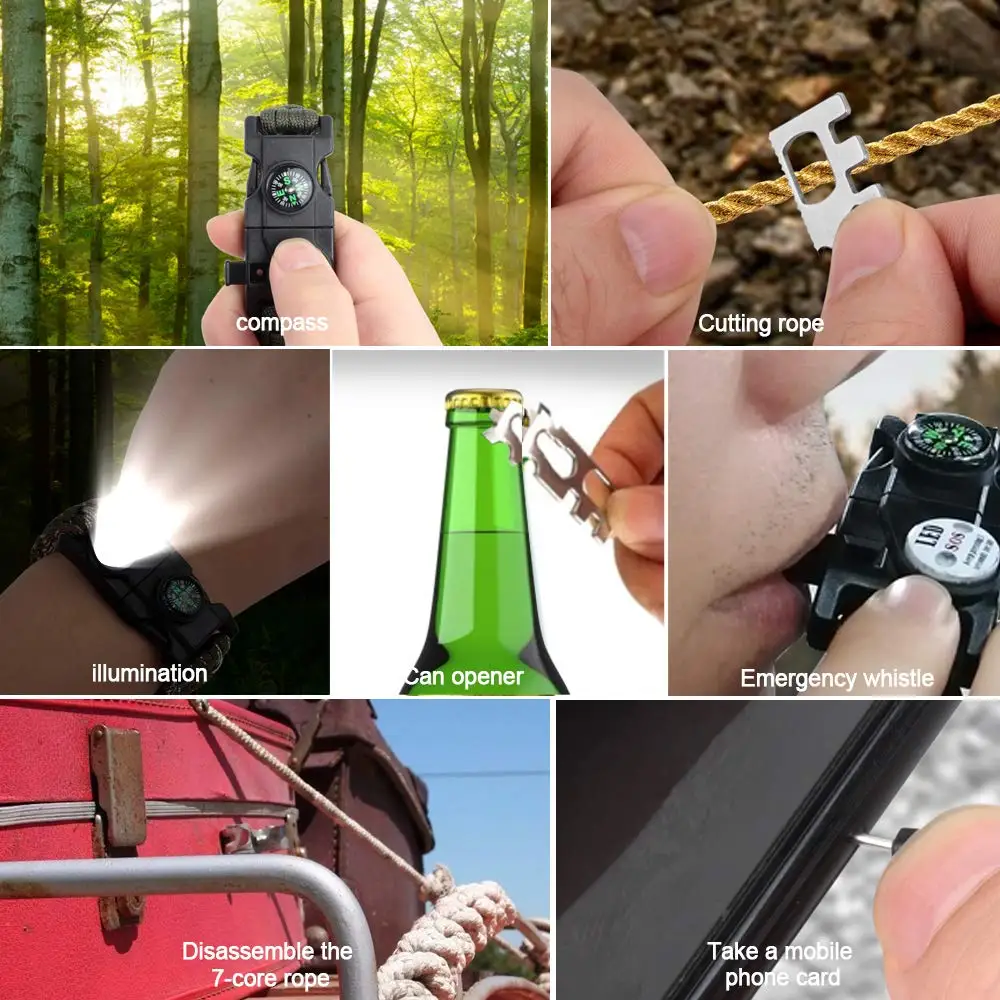 Открытый EDC инструмент браслет выживания со светодиодной подсветкой SOS Кемпинг-параккорд веревка многофункциональный свисток Компас браслет