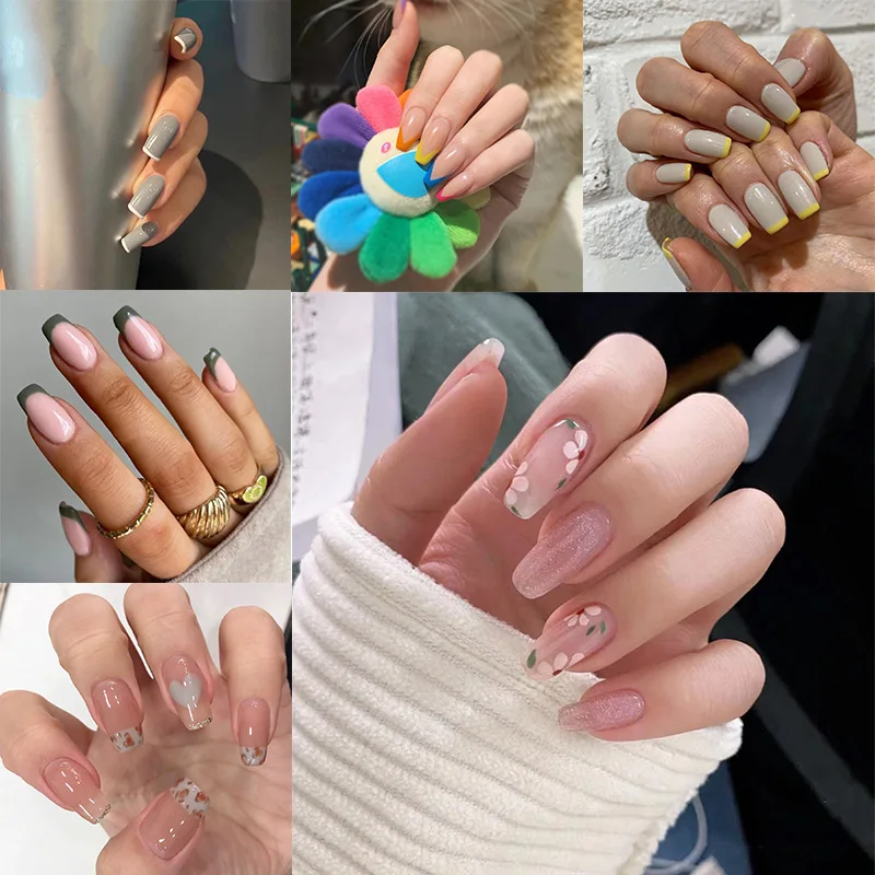 Оптовая продажа, накладные ногти 24 шт.коркор., французское сердце, женский цветок невесты, простой дизайн, искусственные ногти, полное покрытие, акриловые накладные ногти