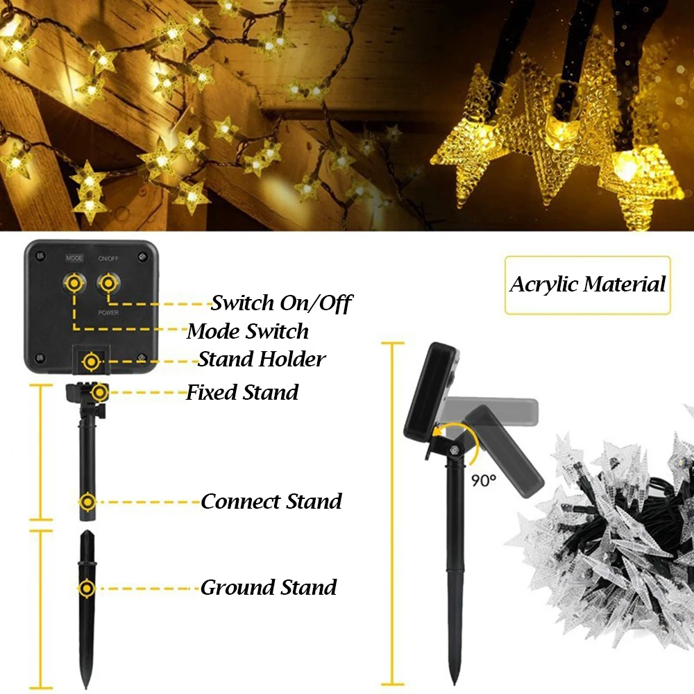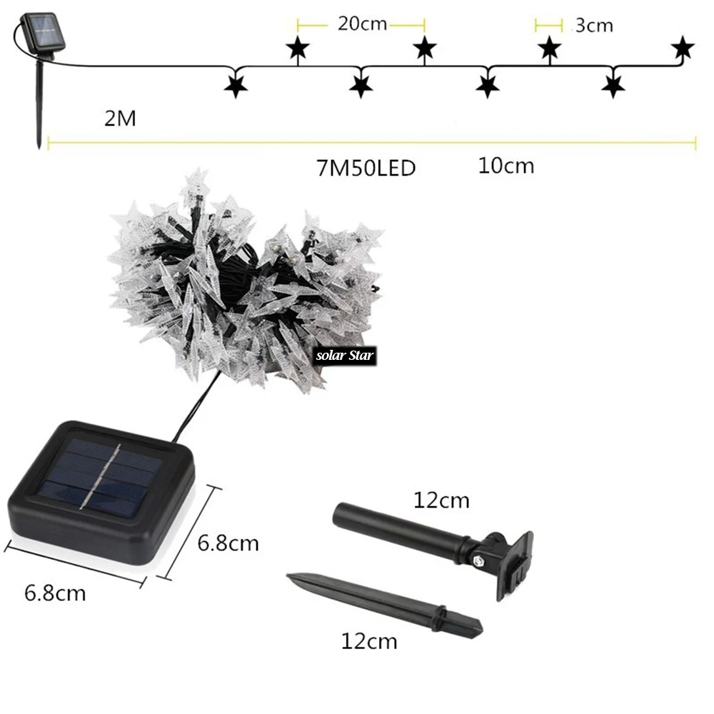 Новинка 2021, гирлянда со звездами на солнечной батарее, украшения для вечеринки, Рождества, Нового года, праздника, светодиодная лампа, наружное освещение для свадьбы, сада