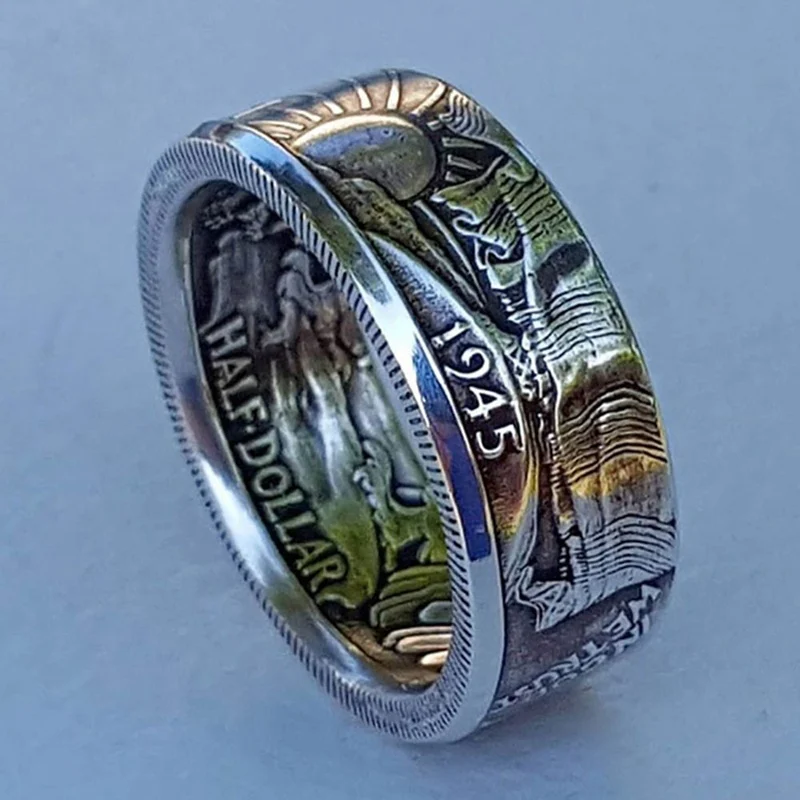 Винтажные кольца в виде монет чухан, полудоллар Моргана, 1945 резно...