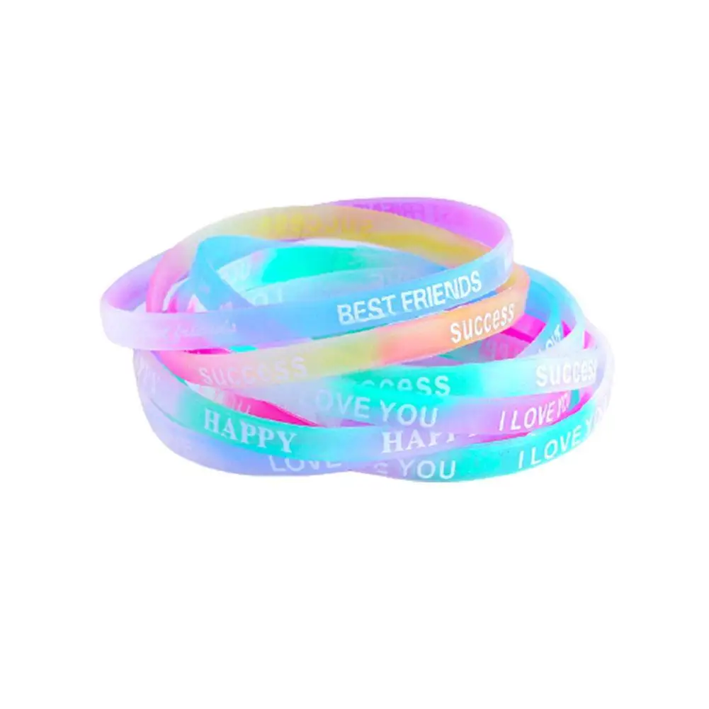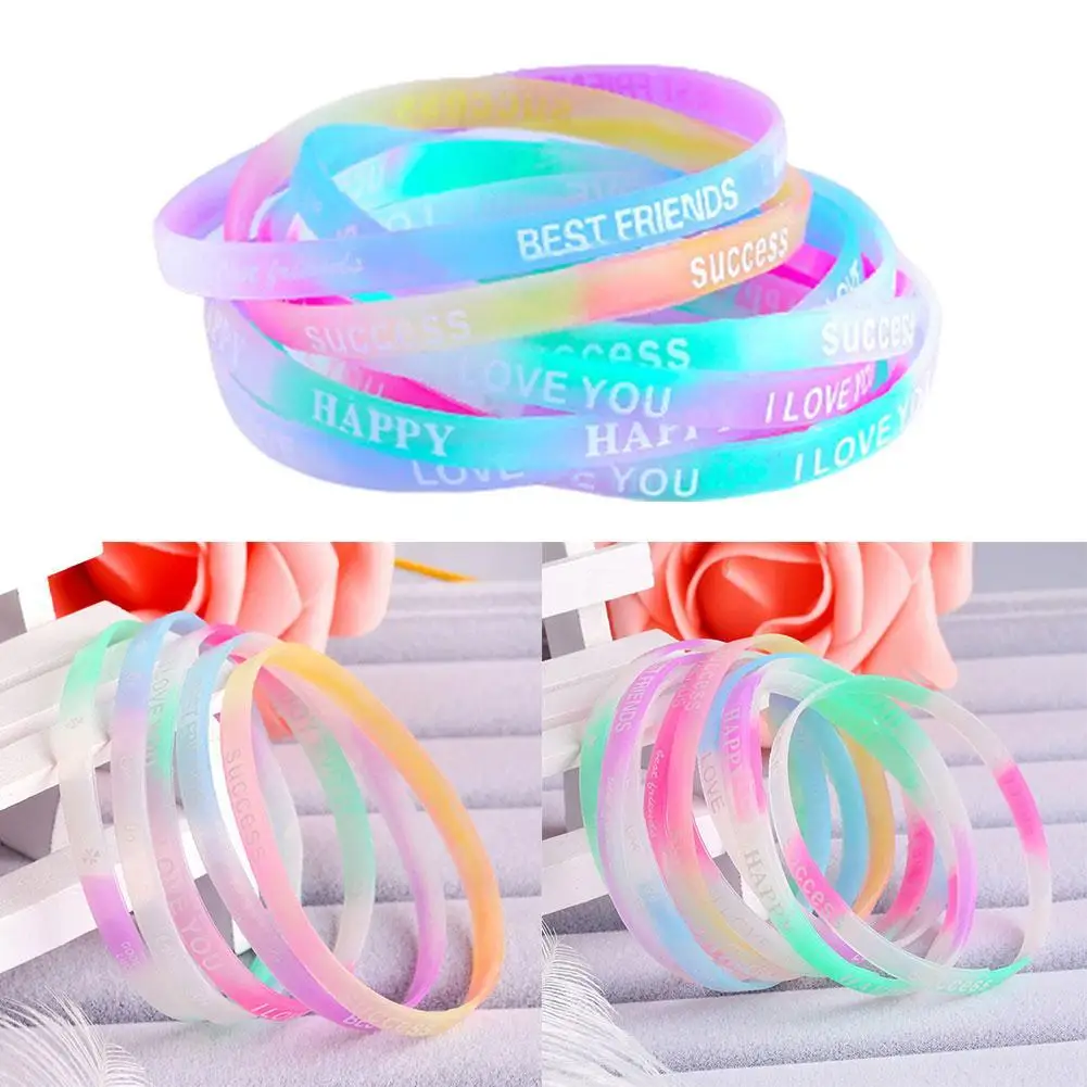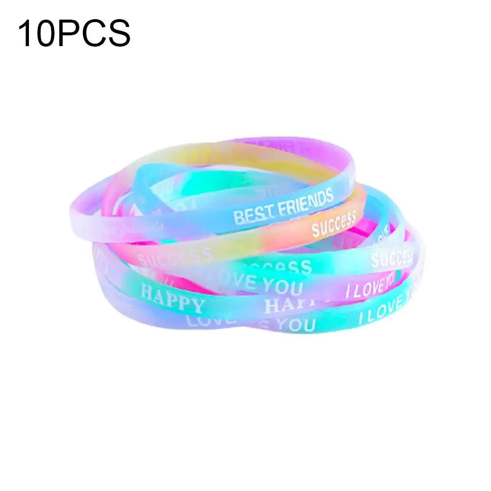 10 светящихся силиконовых браслетов, спортивный браслет с буквами карамельного цвета, Модный Резиновый Браслет с принтом