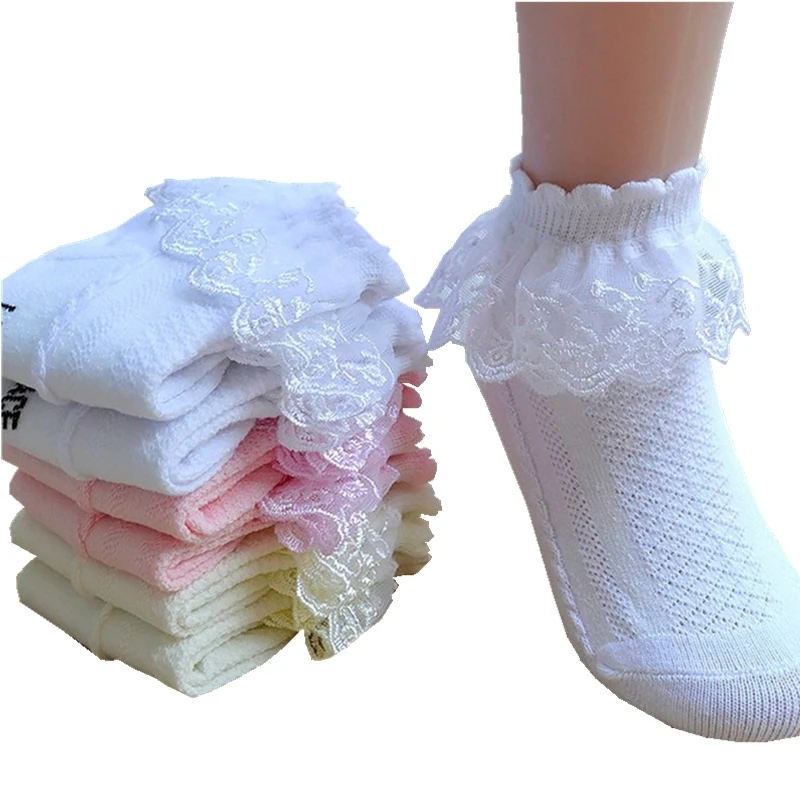 Дышащие хлопковые кружевные сетчатые носки с оборками для принцесс ...