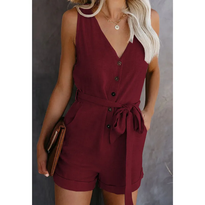 Женский комбинезон без рукавов, повседневный комбинезон на пуговица...