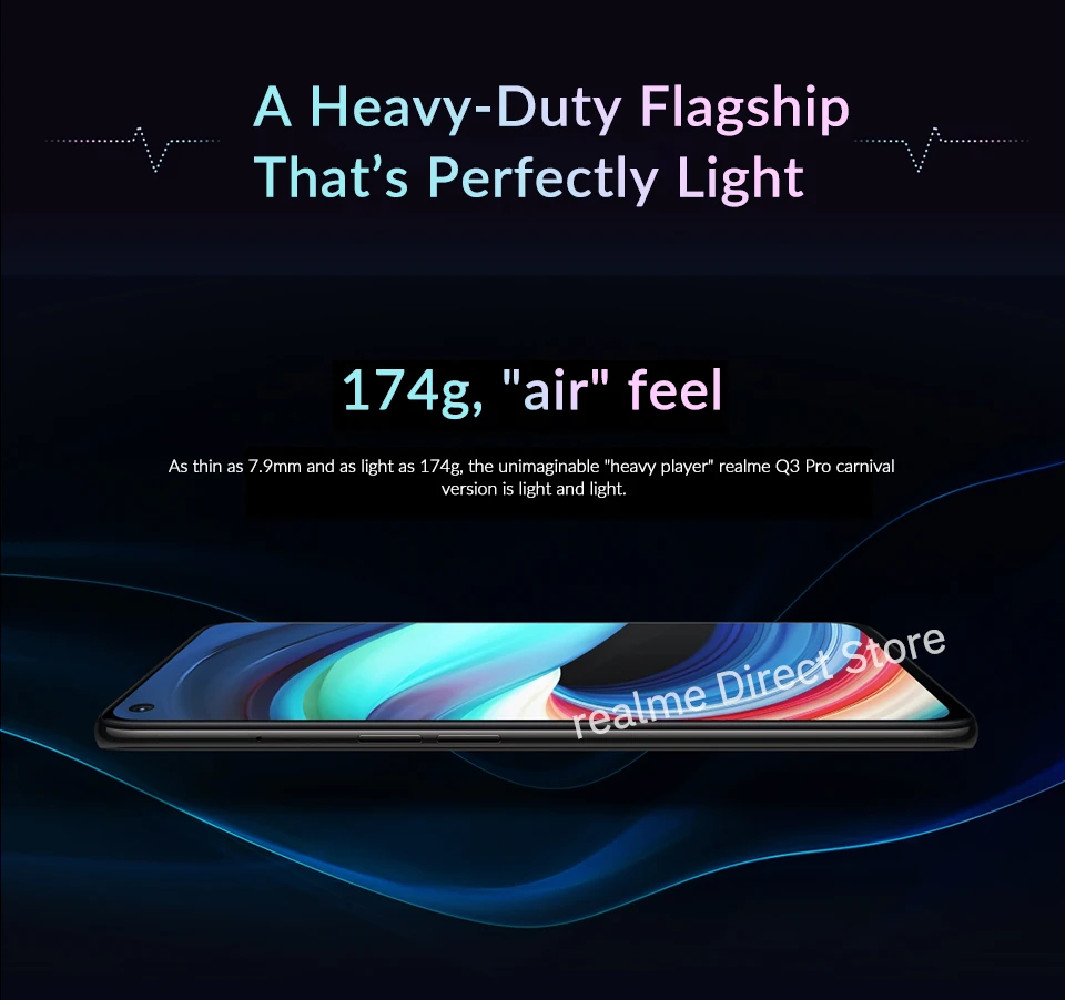 Очень тонкие, 7,9 мм и как светильник как 174g, невообразимые "тяжелых плеер" realme Q3 Pro карнавальный костюм версия светильник и светильник.