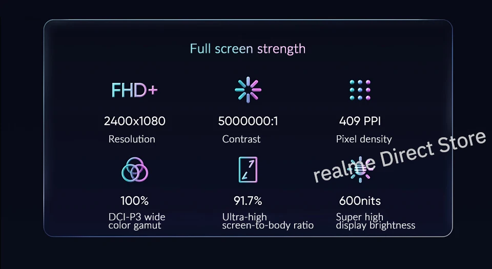 6,43 дюйма 120 Гц AMOLED Полный экран; Разрешение: 2400x1080 FHD +; Соотношение экрана и тела: 91.7%