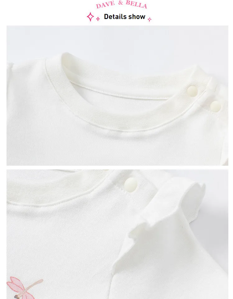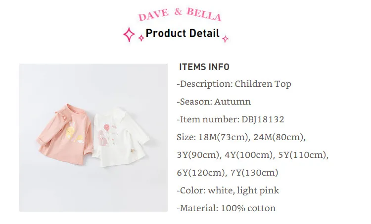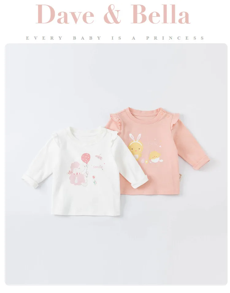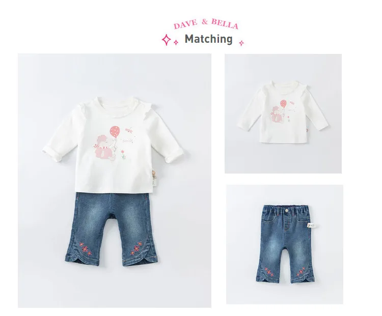 DBJ18132, Детская осенняя футболка для девочек с милым мультяшным принтом Дейв Белла, детские топы, модные футболки для девочек