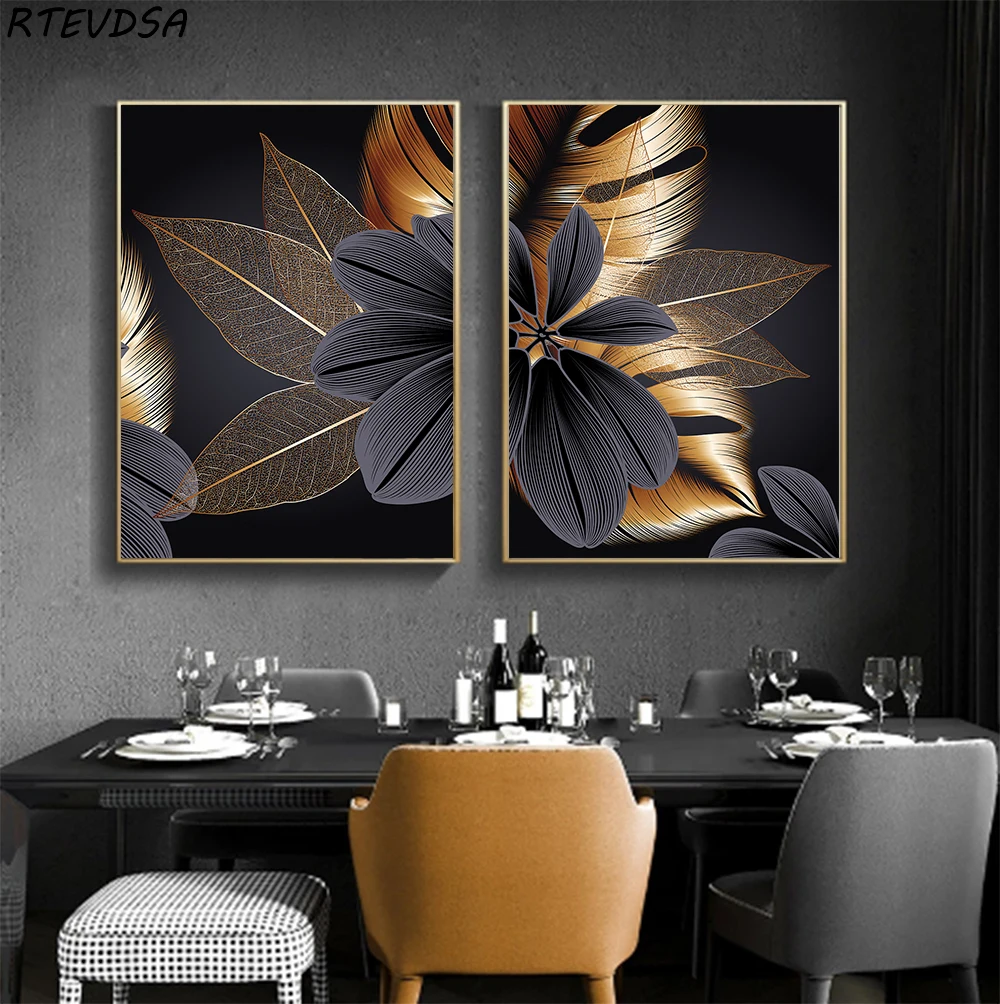 Постер с изображением черного золота растений и листьев, холст для домашнего декора, абстрактная настенная живопись, украшение для гостиной в скандинавском стиле