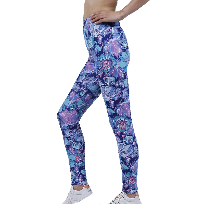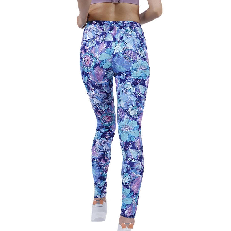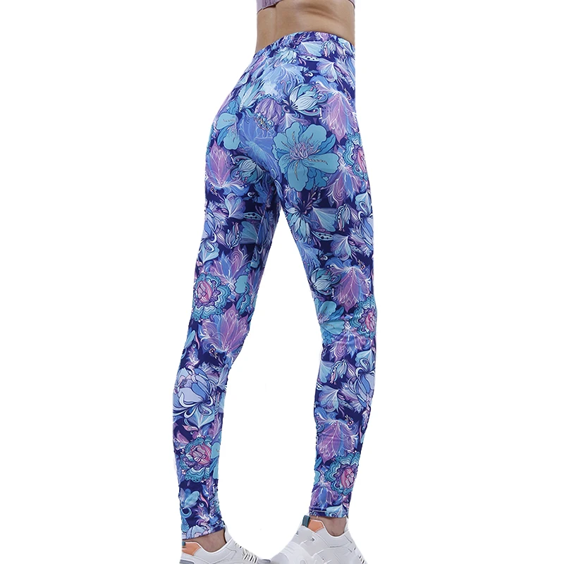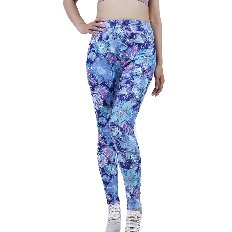 Леггинсы женские из полиэстера, с высокой талией и принтом лепестков