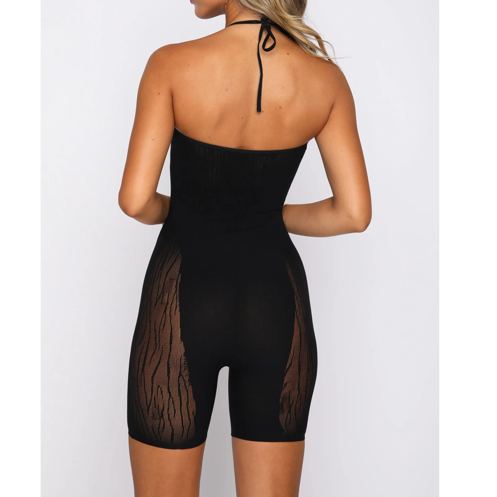 Лето 2022, женские комбинезоны без рукавов, сетчатый прозрачный Облегающий комбинезон с вырезами, Женский велосипедный комбинезон для фитнеса и клуба