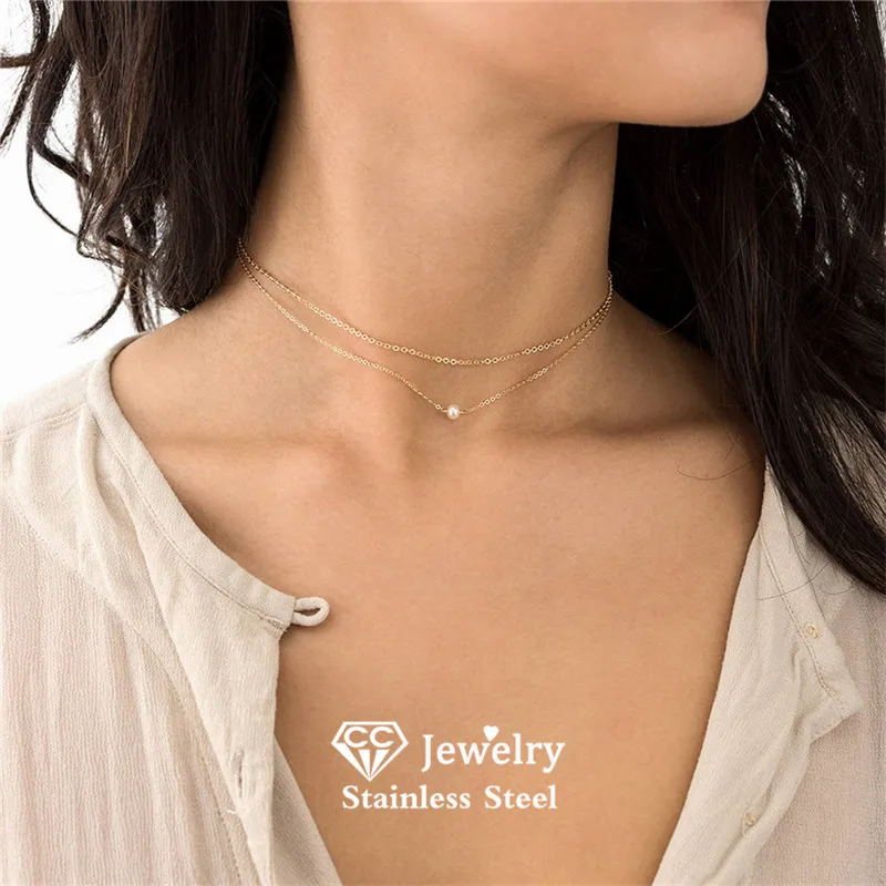 Женское Ожерелье CC с жемчужными подвесками, 2 шт., модные ювелирные изделия, Чокеры с простым дизайном, цепочки из нержавеющей стали до ключиц, распродажа CDNN060