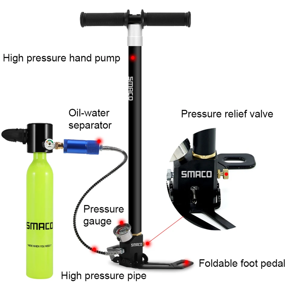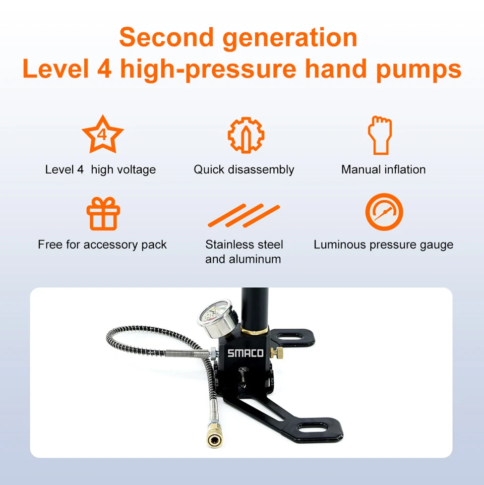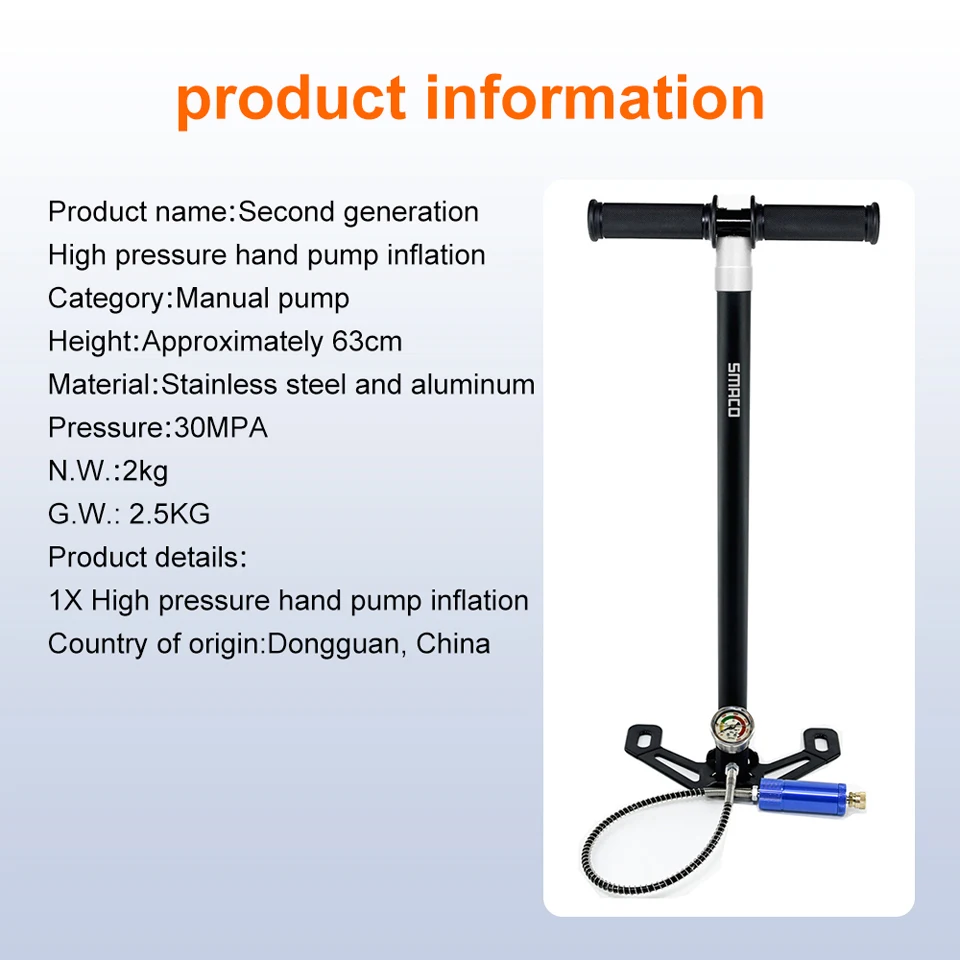 Ручной насос высокого давления второго поколения SMACO. Оснащен сепаратором масла и воды, двойная фильтрация с активированным углем кокосовой скорлупы и хлопковым сердечником, хорошая фильтрация, воздух чистый и дышащий. Он может доходить до 90 процентов эффект от воды и масла разделения, и он может использоваться снова и снова.