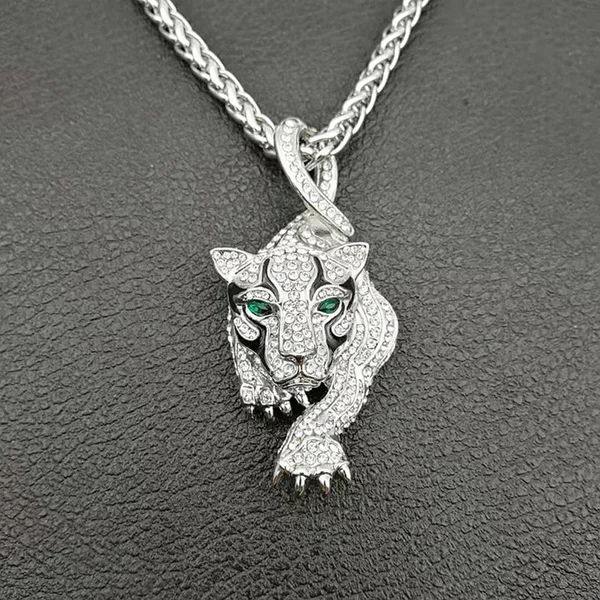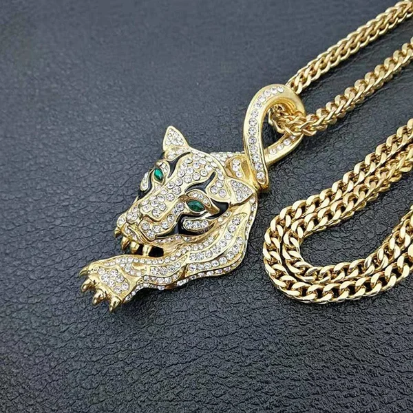 Роскошный Золотой инкрустированный Австрийский Стразы мужской Изумрудный тигр животное ожерелье с кулоном для мужчин ювелирные изделия для вечеринки аксессуары
