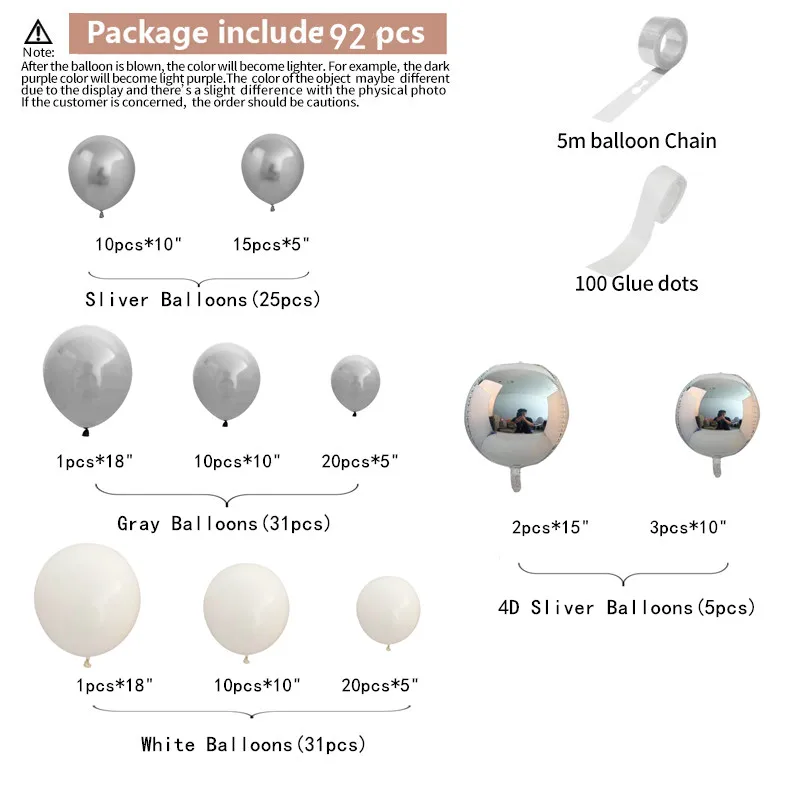 94 шт. фоны для вечеринки Воздушный Шар АРКА Серебряный Латекс День...
