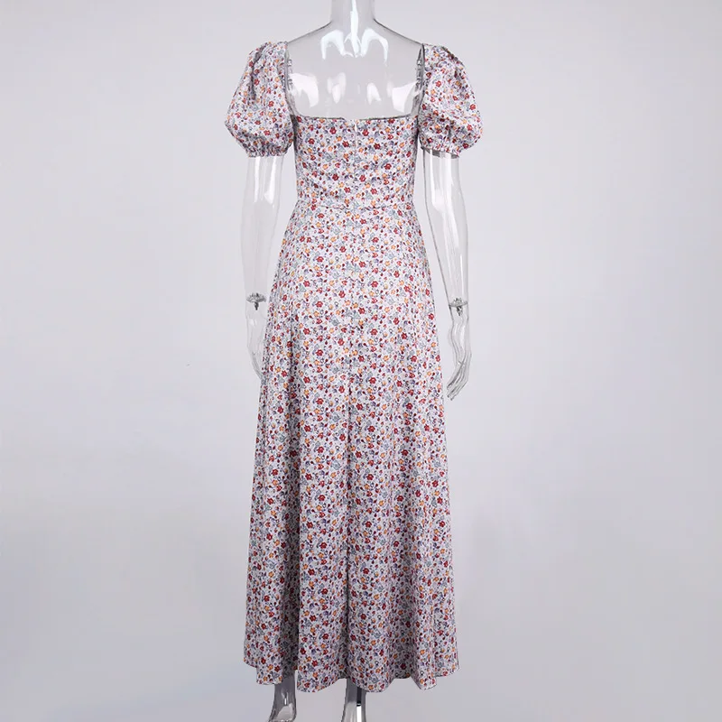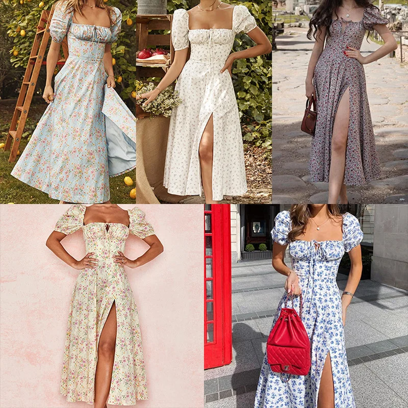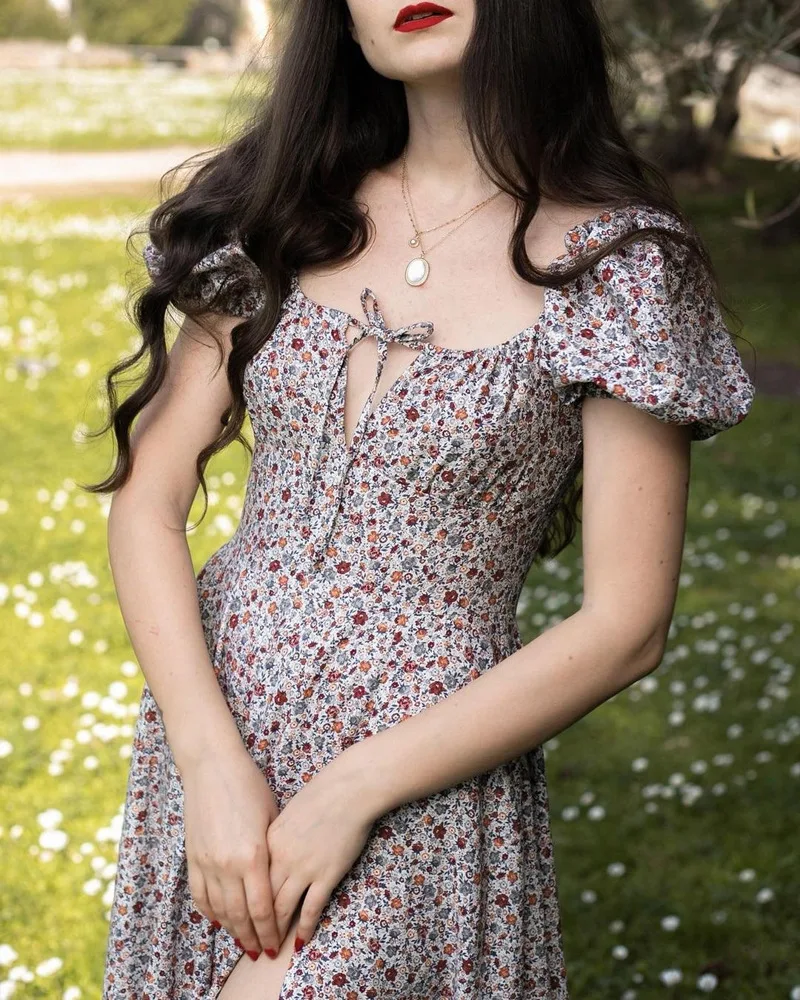 Летнее платье с пышными рукавами и цветочным принтом, элегантное со...