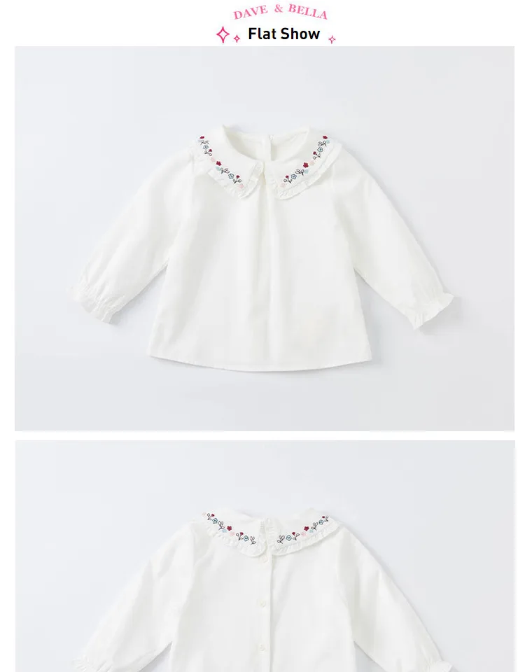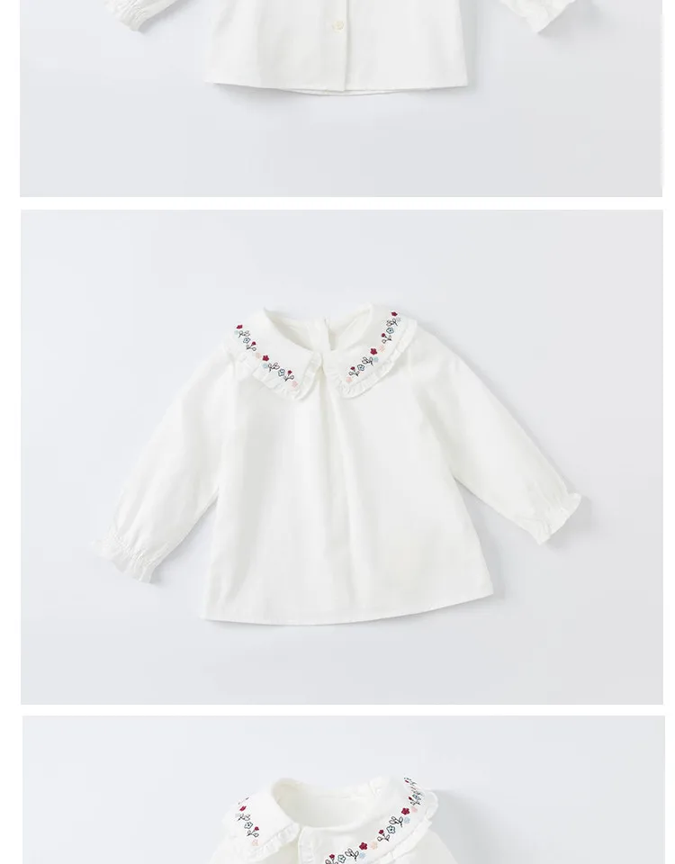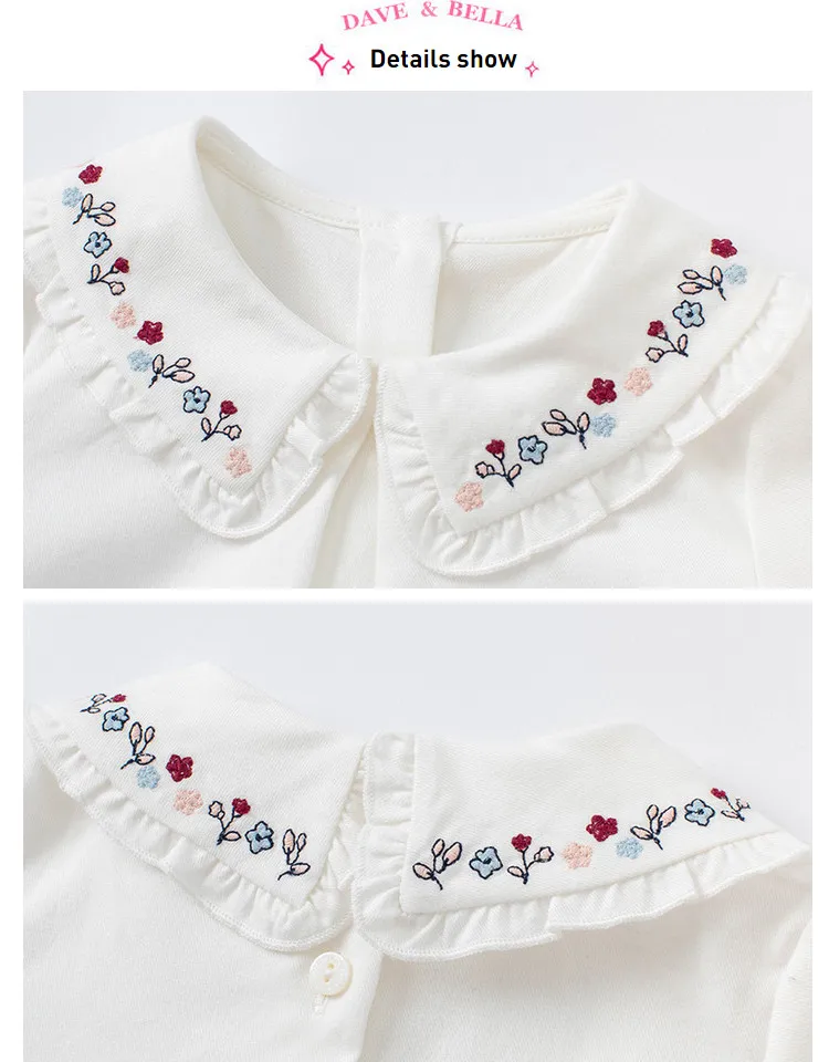 DBS19986, демисезонная Модная рубашка с цветочной вышивкой для маленьких девочек, топы для малышей, детская одежда высокого качества